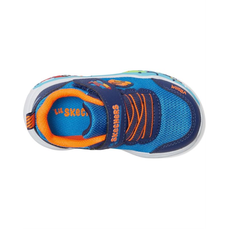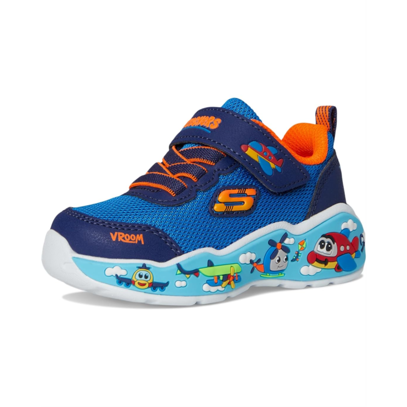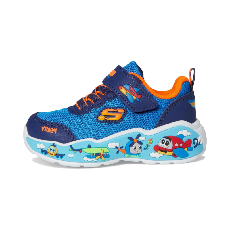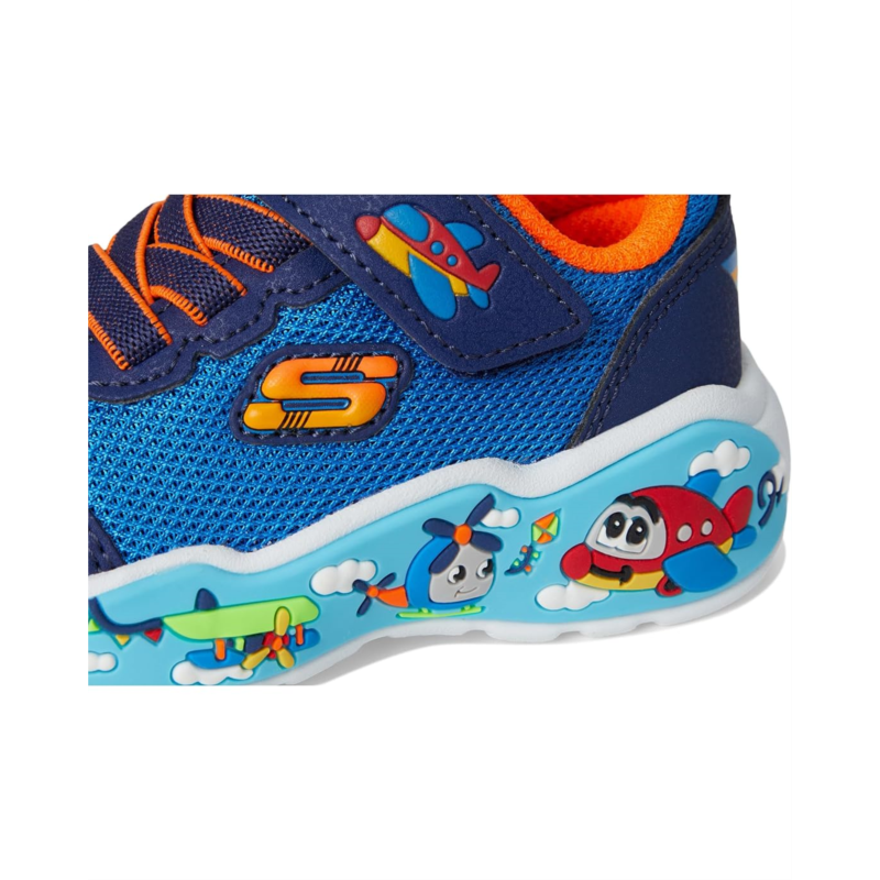 - Bring that fun and playful touch to your little ones look with the SKECHERS KIDS Play Scene 407312N sneakers. This pair of sneakers comes with a cushioned comfort insole, a stretch lace-up with an adjustable hook-and-loop closure, and a round toe design. They also has a flexible midsole with themed graphics for a striking look.