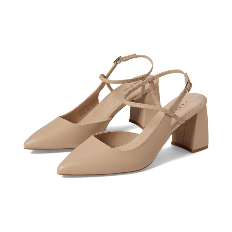 Shoot for the stars with these ALDO Laura pumps. Made with rubber upper, synthetic rubber lining, and rubber insole; the pumps feature a pointy toe. An adjustable ankle strap with buckle closure and block sculpted heel offers a new look for taking you to new heights.