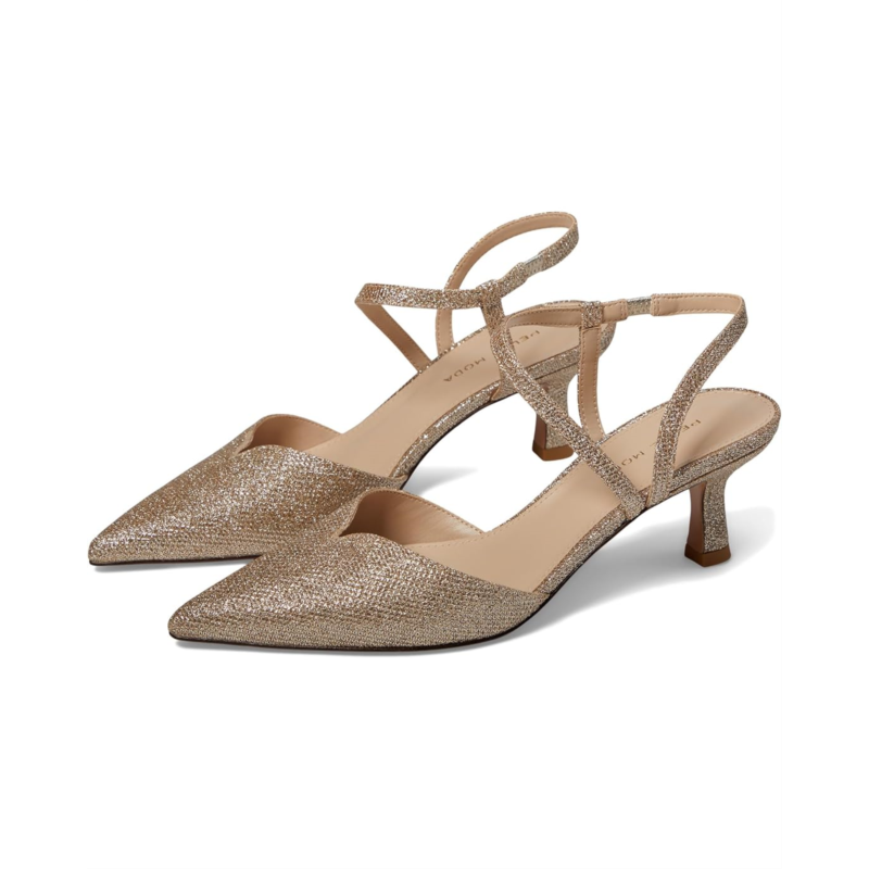 Stand out with a sharp finesse wearing the Pelle Moda Kearn Pumps. The low-top footwear features scalloped top line with leather upper, kitten heel, and a pointed toe silhouette.