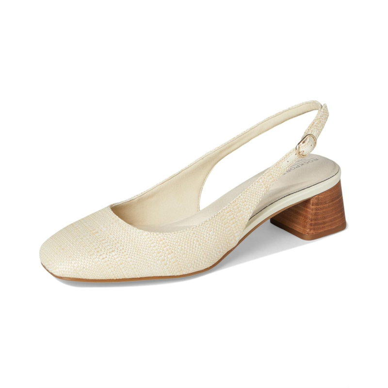 A staple for any wardrobe, the Rockport Total Motion Danna dress pumps combine style and comfort. This pump features a slingback strap and arch support. Featuring truTECH technology for lightweight shock absorption. Engineered with Total Motion technology for added support and flexibility in every step. Featuring square toe, adjustable buckle closure, block heel, low-top silhouette, and brand name on the footbed.