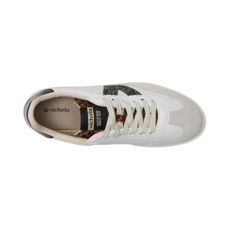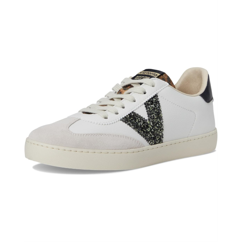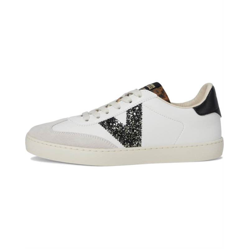 Step into timeless style wearing the Victoria Berlin Ciclista Glitter, where retro vibes meet modern comfort. Featuring a classic suede upper with a signature glitter ''V'' detail, this iconic 1977 design brings a touch of sparkle to your step. Crafted with care, the shoe boasts a soft terrycloth lining, a cotton-covered comfort foam insole, and organic cotton laces for a perfect fit. The organic rubber sole offers durability and eco-conscious appeal, while the animal print tongue adds a wild twist. Lace-up and enjoy the blend of vintage charm and contemporary comfort in every stride.