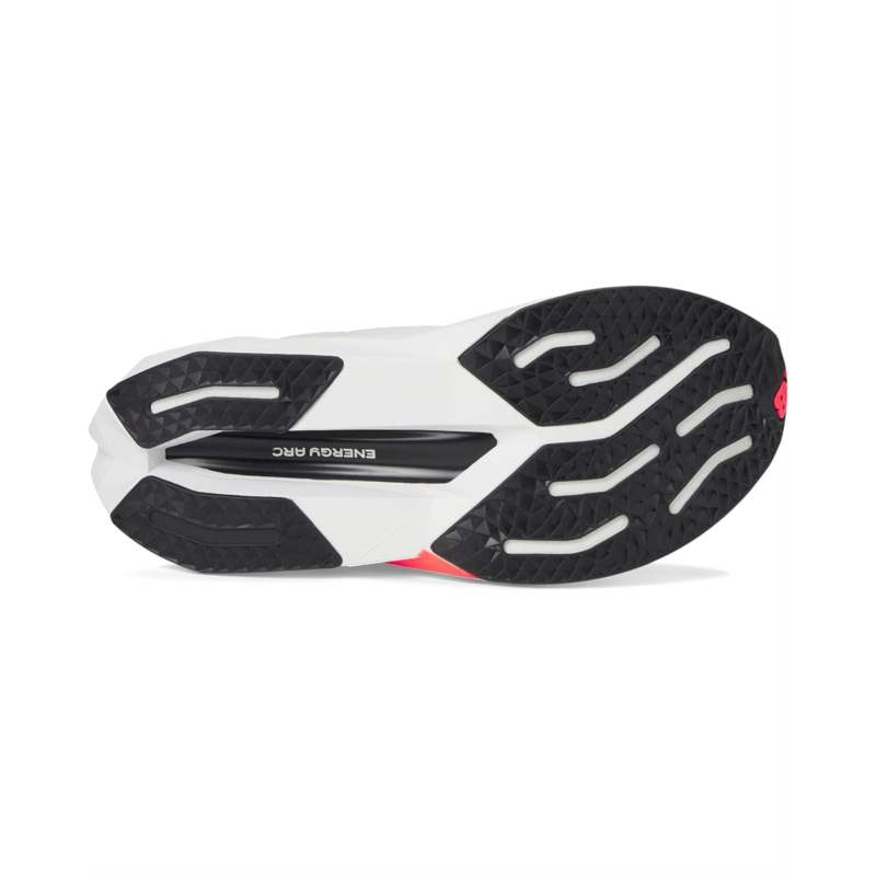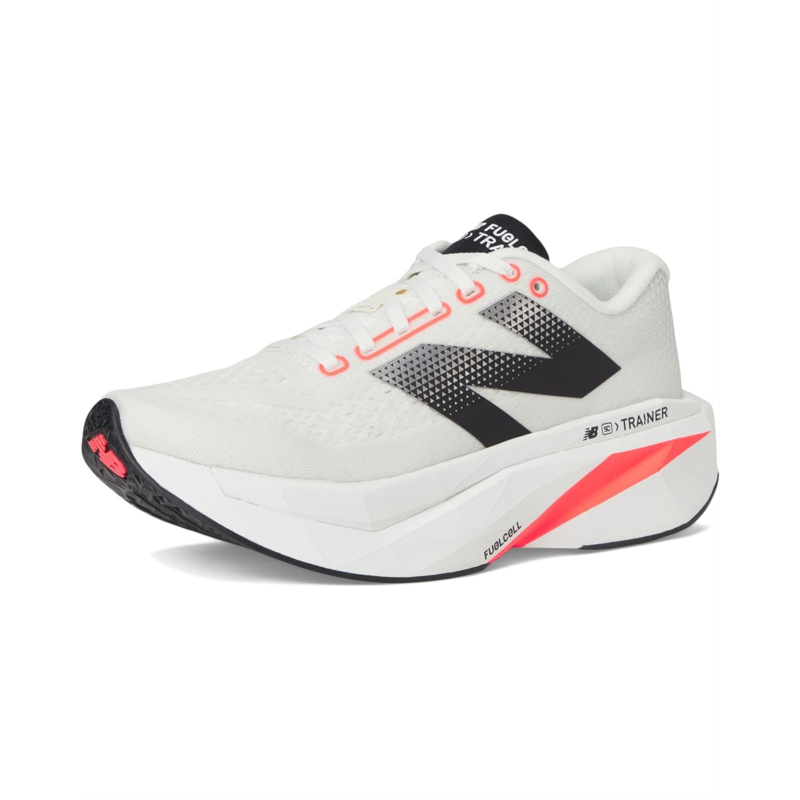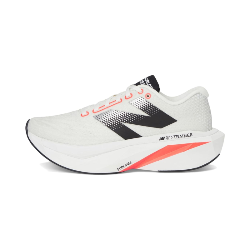 The New Balance FuelCell SuperComp Trainer v3 is a high-performance running shoe built for half- and full-marathon training, combining plush cushioning with energy-efficient design. It features a FuelCell midsole foam with approximately 3% bio-based content, offering a propulsive feel. The Energy Arc system integrates a sport-specific carbon fiber plate with strategic midsole voids to maximize energy return, while the angular midsole design helps reduce overall weight. A durable rubber outsole ensures superior traction across varied surfaces, making it ideal for long-distance runners seeking comfort and speed.