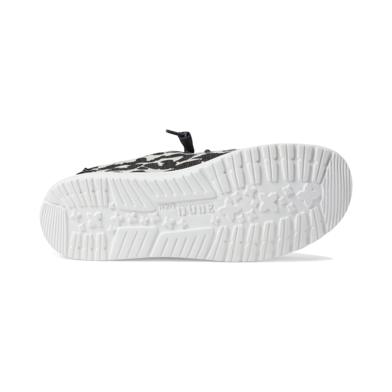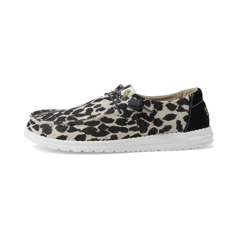 Step into the wild with Hey Dude Wendy Leopard Sparkle, where fashion meets comfort! These pieced woven lace-ups boast a stretch drawcord for a snug fit. Glide effortlessly with the textile insole. A sleek slip on closure, round toe, and cozy textile lining make every step extraordinary.