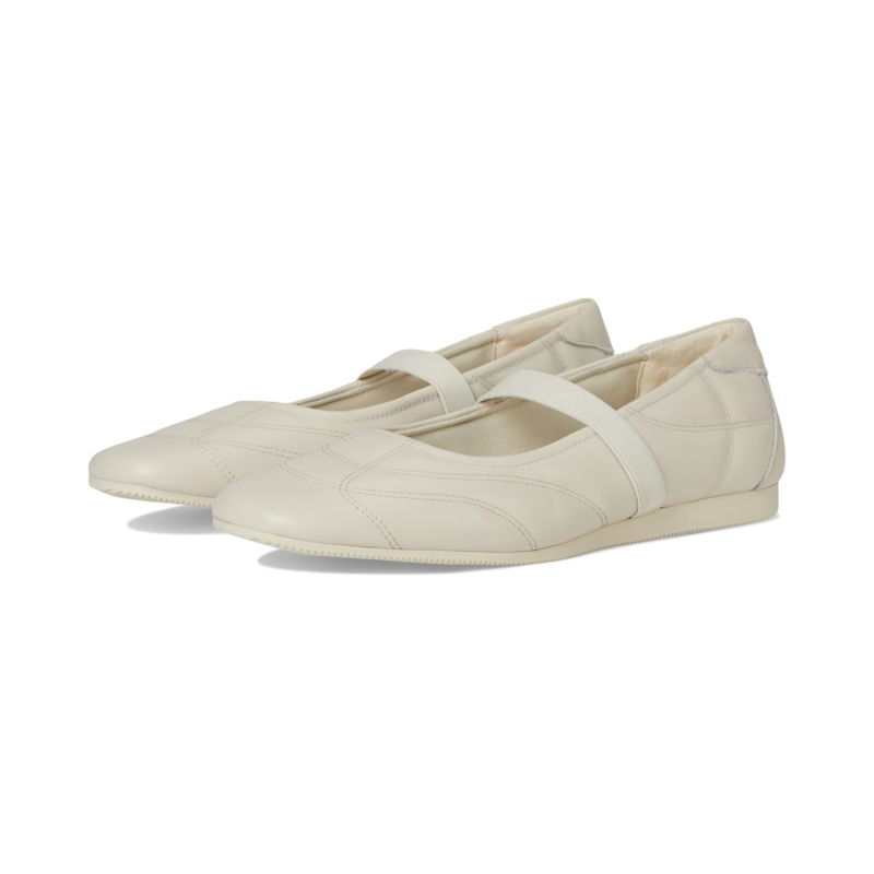 The Vagabond Shoemakers Hillary Maryjane features a sleek ballerina flat design with a sleek square toe silhouette. The pull-on footwear boasts textile and leather upper construction for a refined look.