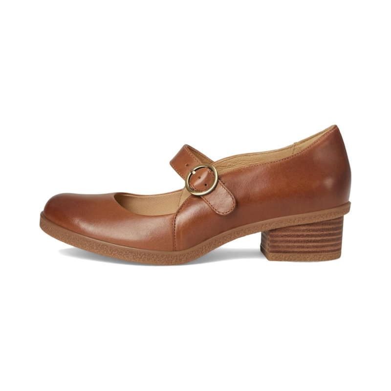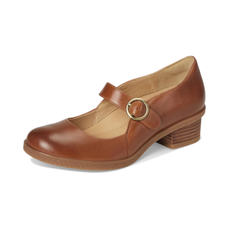 Elevate your style with the Dansko Deirdra shoes, a modern take on the classic Mary Jane, crafted from waterproof leather for ultimate durability. Their upper is treated with 3M Scotchgard for stain resistance. These Mary Jane shoes are made of leather insole and lining. The removable, molded PU footbed with Dansko Natural Arch technology and memory foam provides all-day comfort and support. Their adjustable buckle strap offers a perfect fit. Enjoy all-day comfort with signature arch support and chic leather stacked block heels, making these heeled shoes perfect for any occasion.