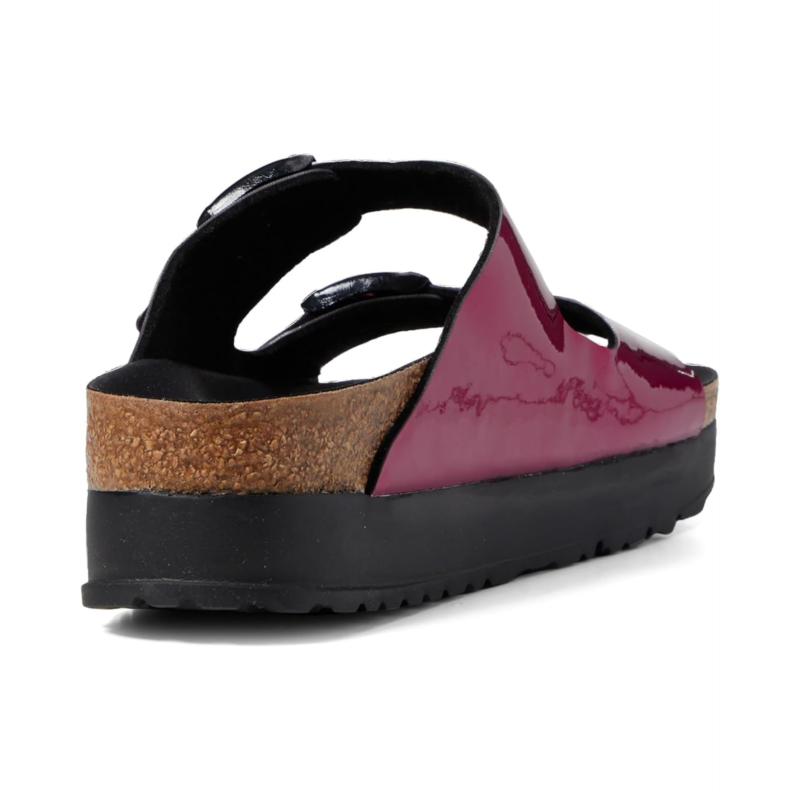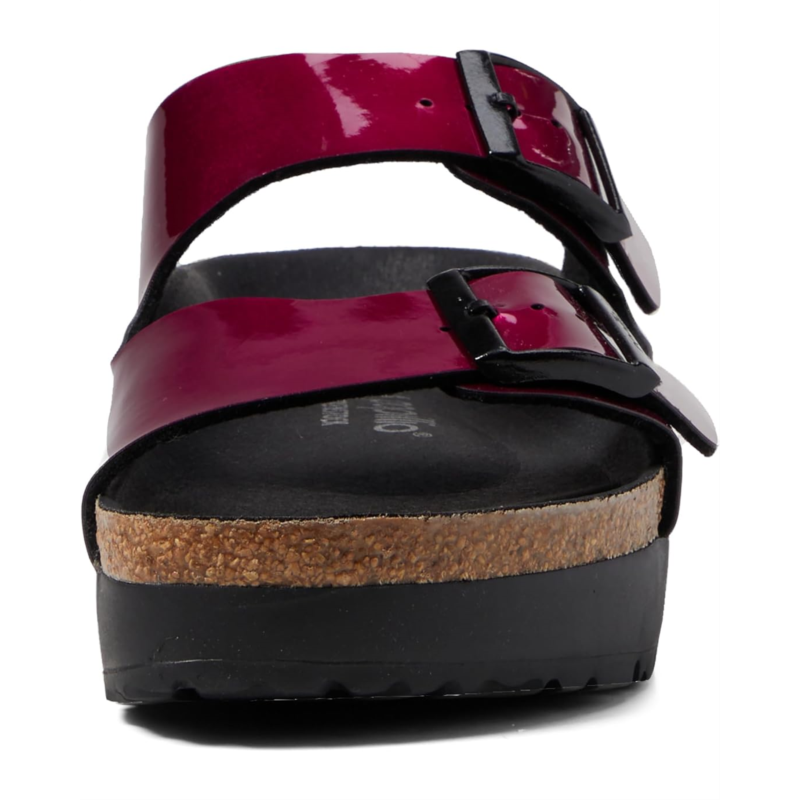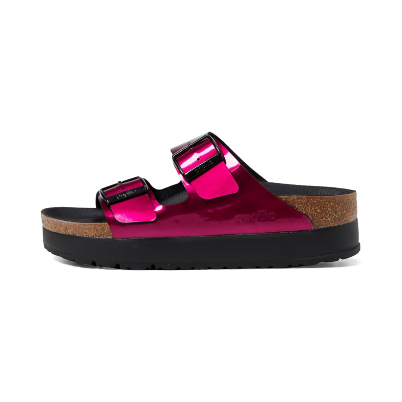 Shiny and fun, the Birkenstock Papillio by Birkenstock Arizona Platform Sandal offers effortless style and comfort to your look. The Birko-flor upper with adjustable buckle closures to ensure easy on-and-off wear and a secure fit.