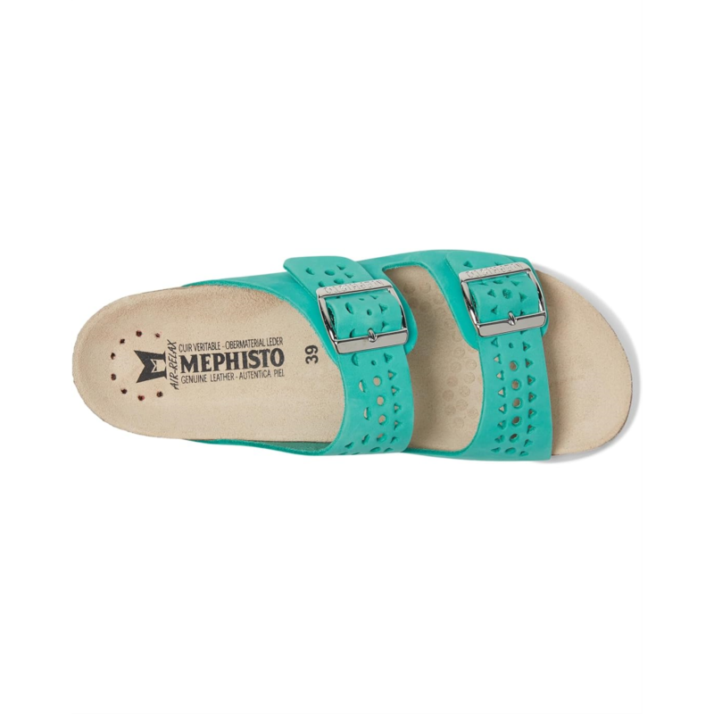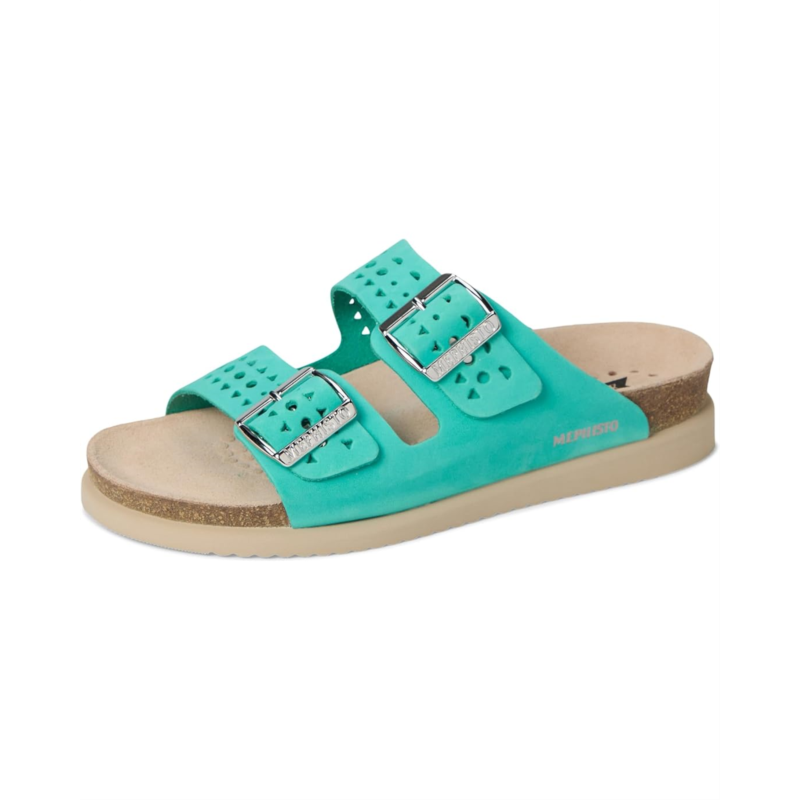 Perforated and lightweight, the Mephisto Hester Perf mules offer an ideal fit. The unique SOFT-AIR technology integrated into the cork midsole ensures fatigue-free walking. AIR-RELAX technology respects the anatomy of the foot to prevent arch collapse. Also, the dual strap design is accentuated with large buckles.