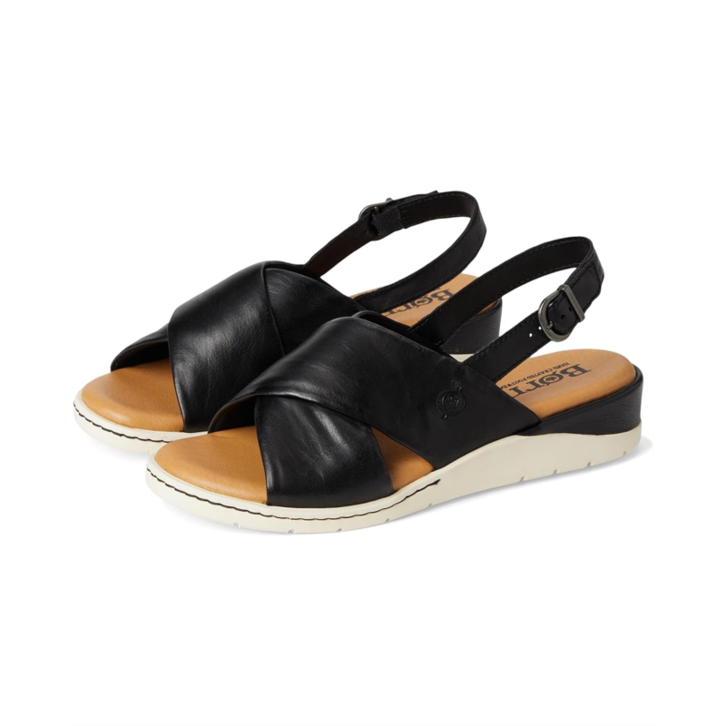 Discover the perfect fusion of fashion and function with Boern Mia sandals. With a unique sport-inspired design, the slip-on sandals feature soft leather upper construction. These wedge sandals offer unparalleled comfort for your active lifestyle.