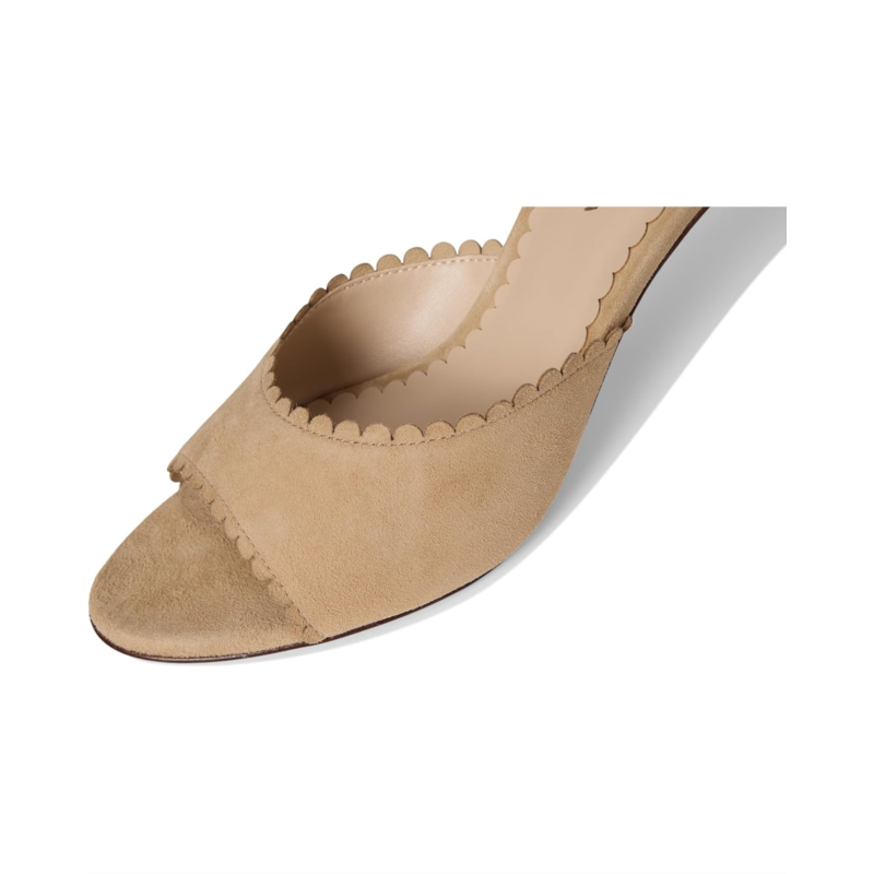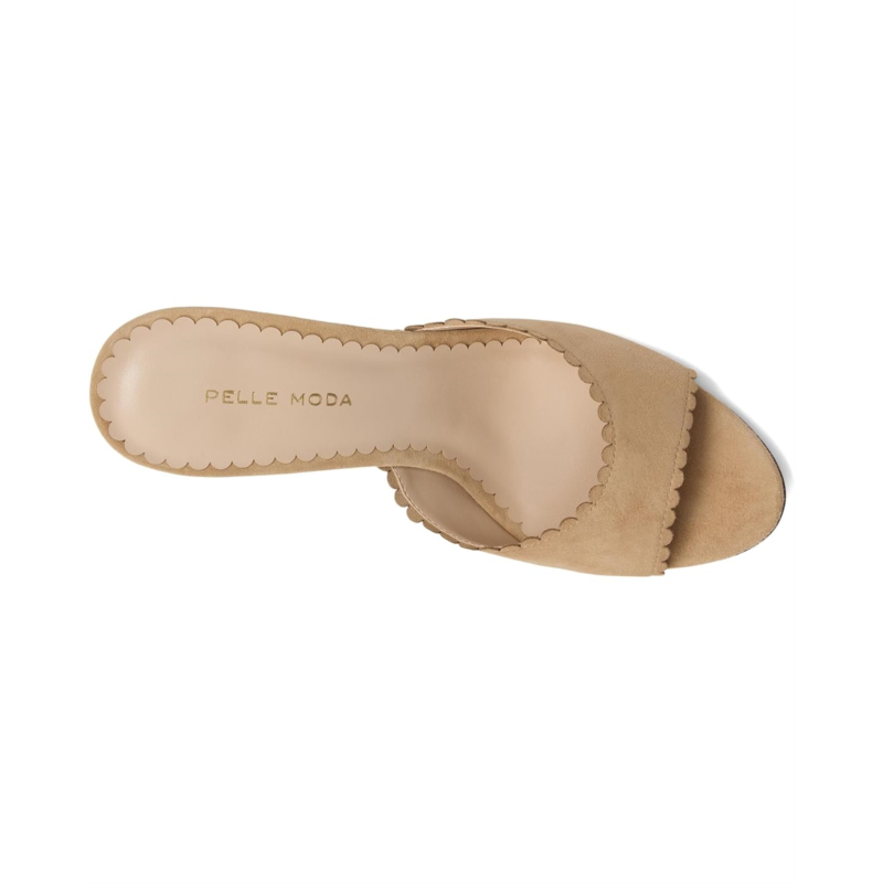 The Pelle Moda Hanli is a perfect day or evening slide with soft suede upper that has scallops around the edges. A sleek kitten heel and open, almond toe shape complete the look.