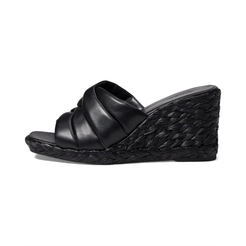 The classic Vince Gilian Wedge Heels are accentuated with monochromatic braided detailing and high heel to offer an elevated look.
