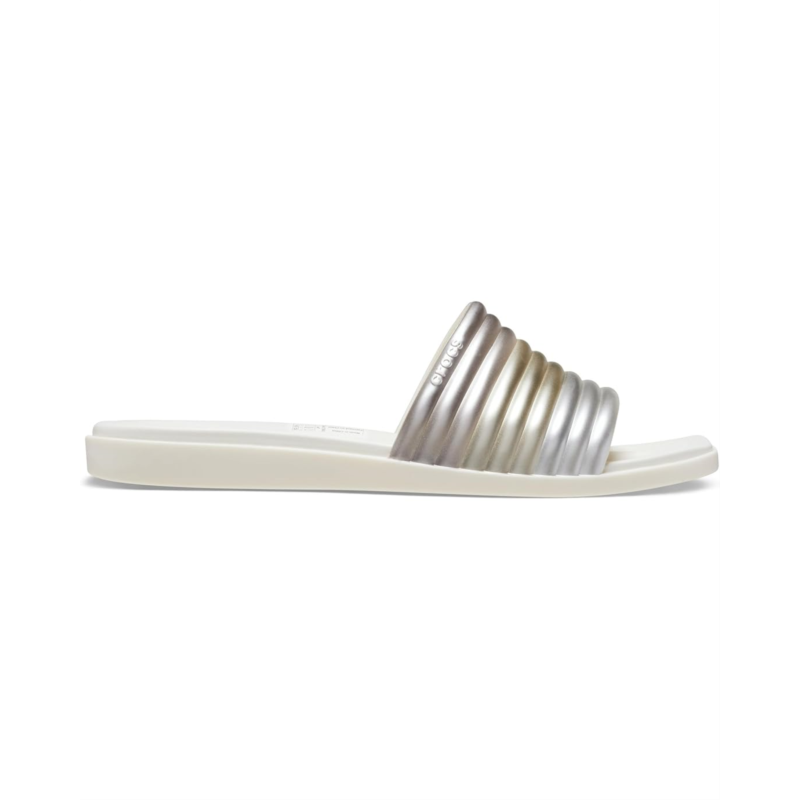 Step into the spirit of the city with the Crocs Miami Slide Sandals, a perfect blend of elegance and laidback style. Crafted as slides for women and men, these trendy slides boast a square toe shape and a soft, ridged upper strap, capturing the essence of urban fashion with everyday comfort. These Crocs slides redefine trendy footwear with a lightweight and flexible design. The soft and puffy ridged upper complements the sleek, gradual wedge, offering a flat sole with a slight lift. Whether you''re looking for mens slides or womens slides, the Miami Slide brings a stylish and comfortable edge to your wardrobe. Elevate your look with these dressy yet comfortable sandals for women.