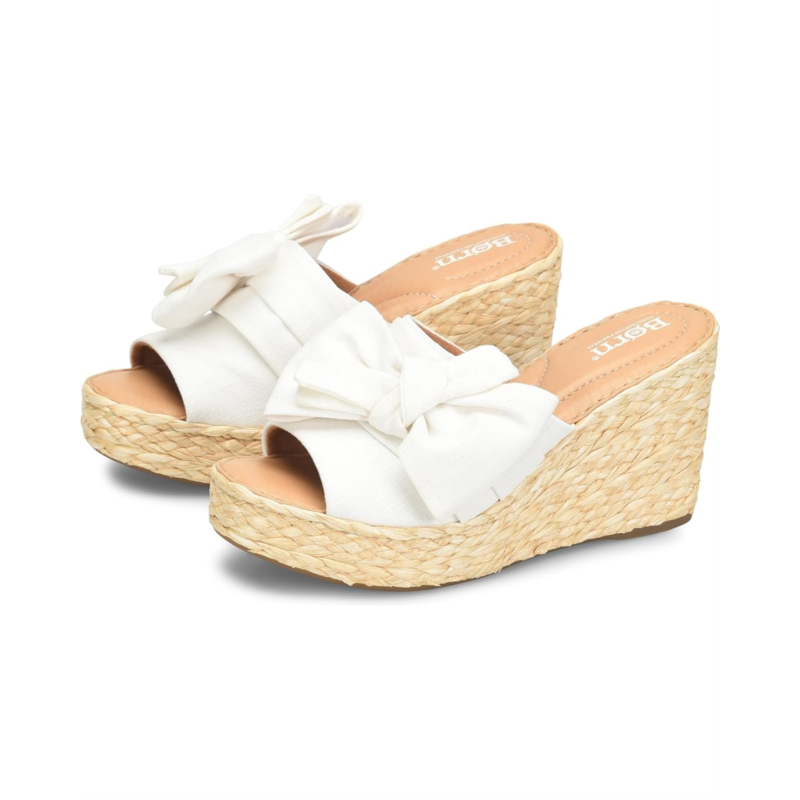 Featuring Opanka hand-crafted construction that offers durability, the Born Adalia sandals are an ideal choice for different occasions. The leather upper of these slides is styled with an asymmetric bow detail that gives them a stylish look. These platform slides are crafted with leather-covered footbed with extra foam to offer superior cushioning. The suede lining provides added comfort. These espadrillekorea sandals make a stylish addition to your footwear collection.