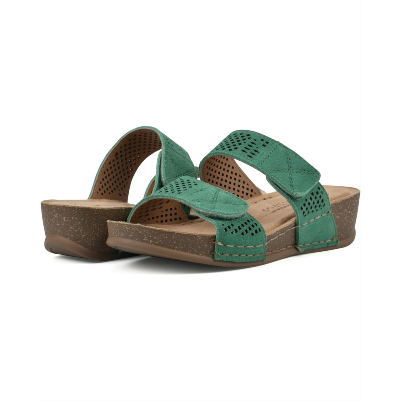 Make a statement in your spectacular fashion tempo wearing the White Mountain Ferula Sandals. The slip-on footwear features breathable leather upper straps with perforated design and low wedge heels.