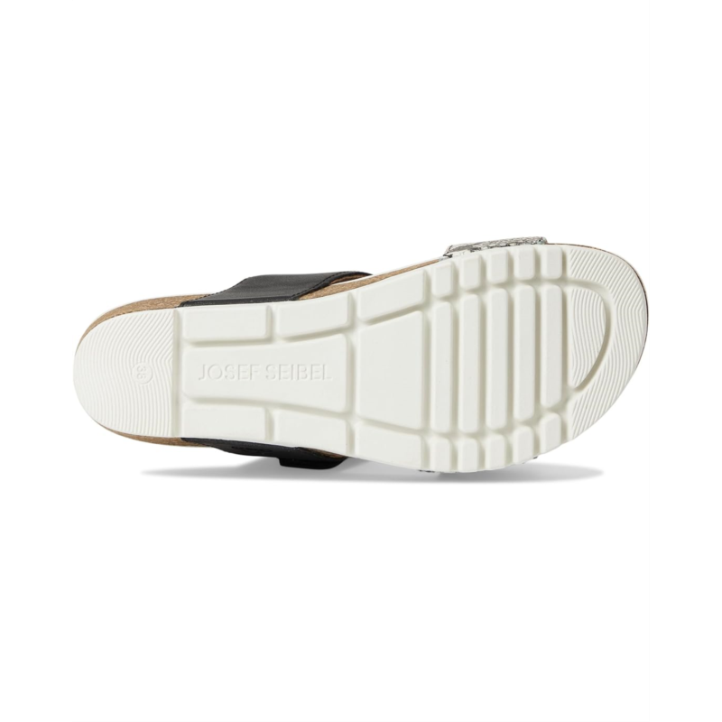 Take every step with enhanced comfort and style wearing Josef Seibel Quinn 14 Sandals. The open round-toe sandals come with a full-grain leather upper, leather lining, super soft, padded & contoured polyester footbed, and cork/latex composite midsole. The two hook-and-loop adjustable straps ensure a proper fit and the wedge heel detail with slexible forefoot elevates the style.