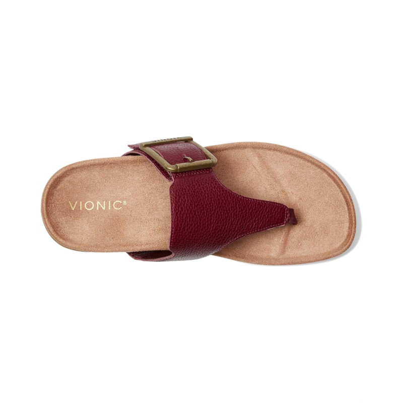 Step into a world of ultimate support, cushioning, flexibility, and built-in arch support, all meticulously designed for your walkability. The VIONIC Emma Thong Sandals feature exclusive alignment technology that ensures the perfect balance for your entire being. Their premium leather upper is styled with buckle detail and a hook-and-loop closure, while the lightweight, flexible midsole reduces stress on the feet, ankles, and knees. They are made of an EVA insole and polyurethane lining. Their built-in VIO MOTION Technology footbed features contoured arch support, with shock-absorbing cushioning and a deep heel cup to provide stability and forefoot flexibility. The built-in orthotic of these slide sandals has been shown to be effective in treating heel pain caused by plantar fasciitis or Achilles tendonitis. For optimal comfort, wear these Vionic sandals for a few hours to let your feet adapt. Within 1-2 weeks, you should experience full orthotic comfort and support.