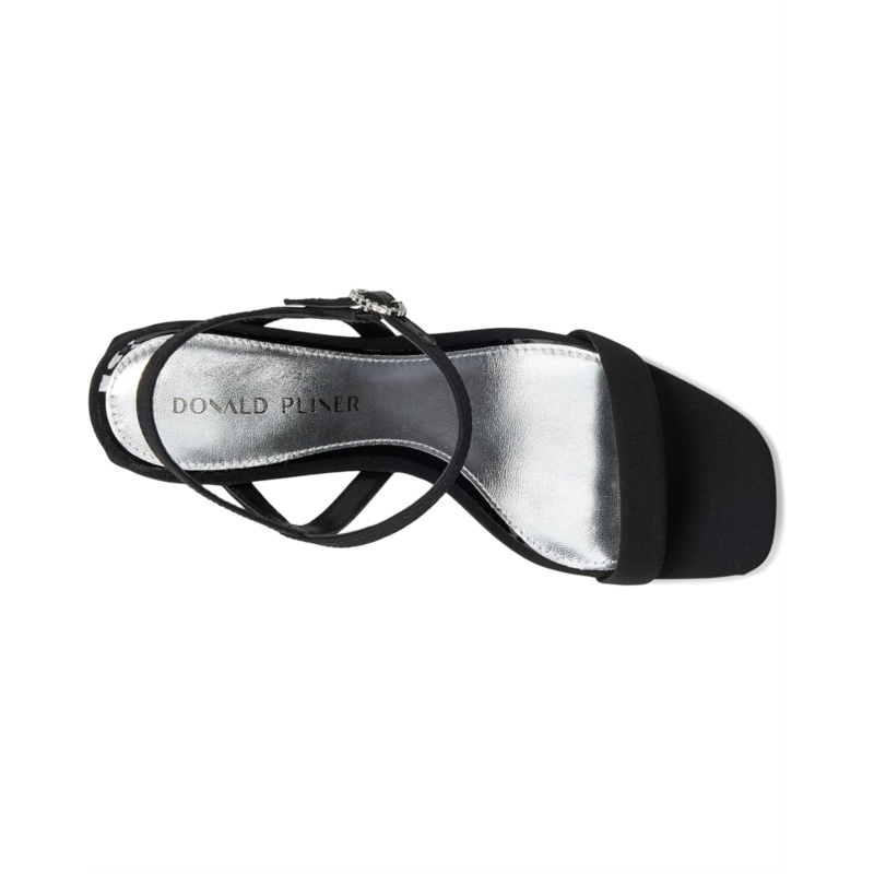 The Donald Pliner Brazi is your go-to heel for elevated elegance, blending luxe materials and standout sparkle. Featuring a chic quarter strap adorned with an adjustable rhinestone buckle, it delivers a custom fit with a dose of dazzle. Choose from a radiant satin upper or a soft pearlized nappa finish-both paired with a matching covered heel for a polished monochrome look. The open toe keeps things breezy, while the sturdy block heel and supple leather lining, insole, and upper ensure comfort that doesn''t quit. A manmade outsole provides durability for all-day-and all-night-wear.