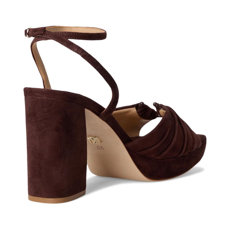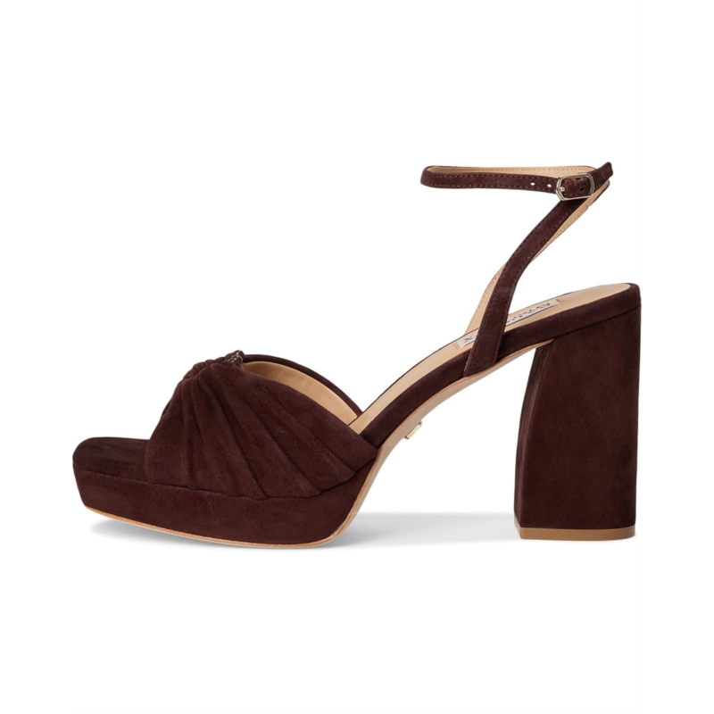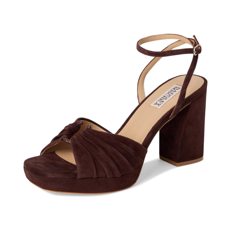 Badgley Mischka Veda is the ultimate statement sandal for those who love to shine. Crafted with a luxe leather upper, lining, insole, and outsole, this platform sandal exudes sophistication from every angle. The standout ruched upper adds an eye-catching touch of texture, balancing elegance with a playful edge. Designed with a sturdy block heel, it provides both lift and stability, making it perfect for long nights on the dance floor or elevated daytime looks. The adjustable ankle buckle strap closure ensures a secure fit, while the platform construction gives you height without compromising on comfort.