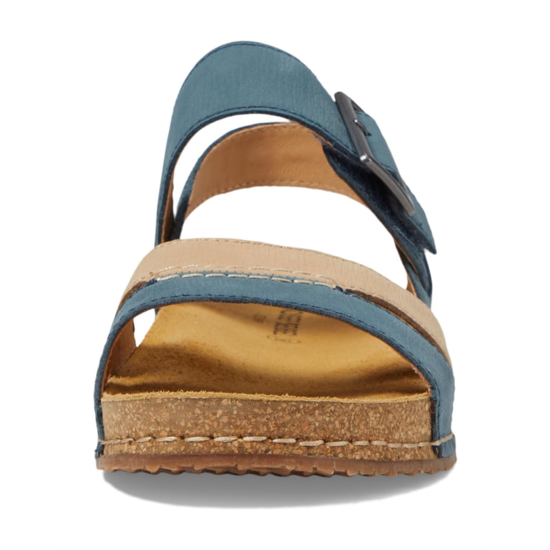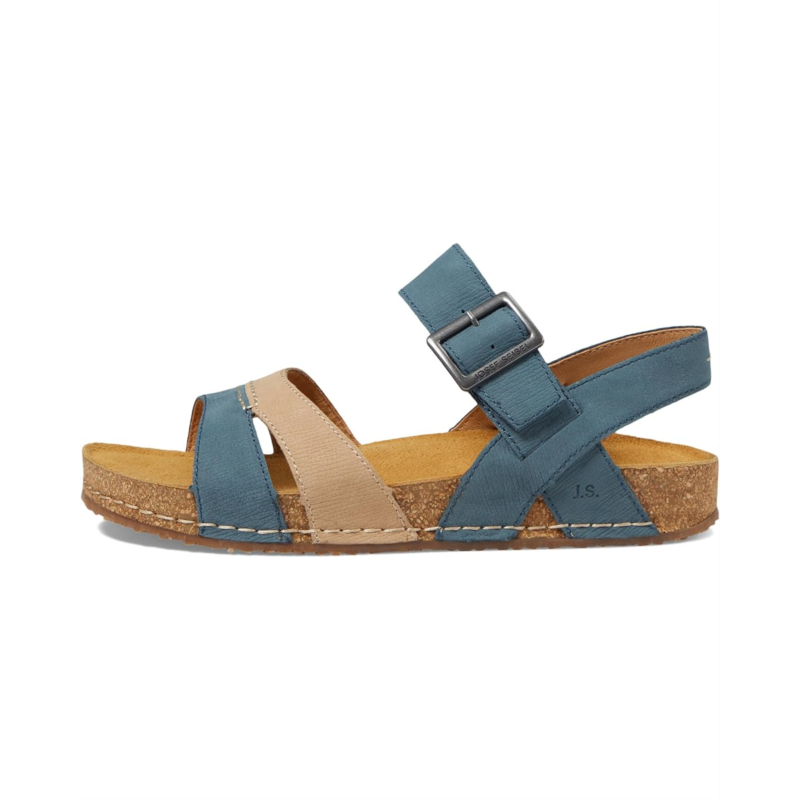 Stride a confident and sophisticated look wearing the Josef Seibel Hannah 01. Crafted from leather upper, lining and insole, this pair of two-tone strappy design sandals features open round toe, supportive heel strap with adjustable hook-and-loop closure and decorative buckle detailing for ultimate comfort.