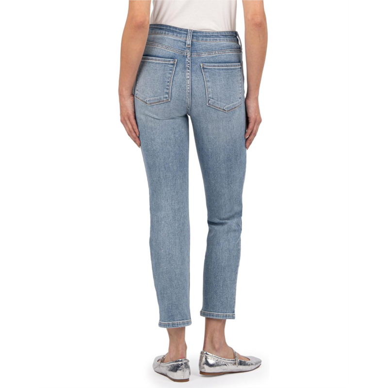 Give your look added style and elegance wearing KUT from the Kloth Reese High-Rise Fab Ab Ankle Straight Regular Hem In Gifted Jeans. The Reese is our signature straight leg with a better-than-vintage aesthetic. It is a relaxed fit straight leg with an ankle length and a modern edge. The high-rise, medium wash jeans features a zip-fly & button closure, belt loops, a five-pocket design, and an ankle-length silhouette.