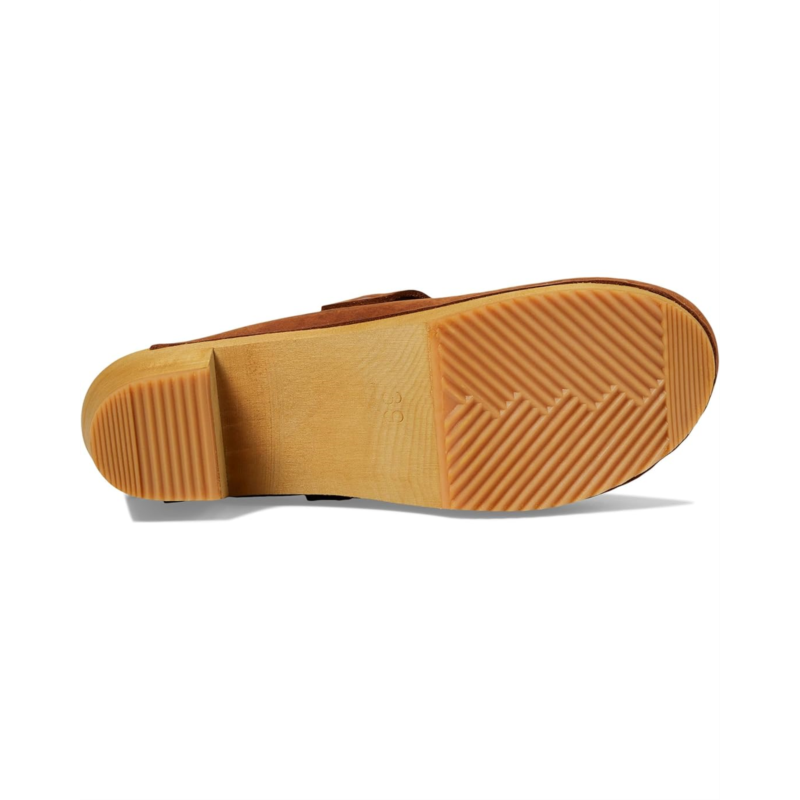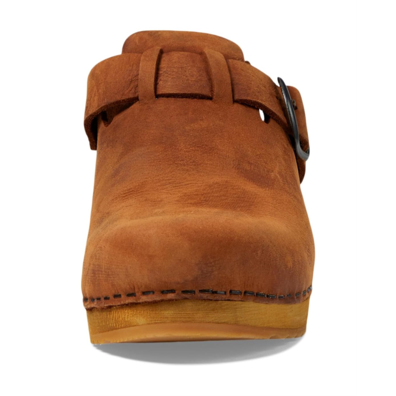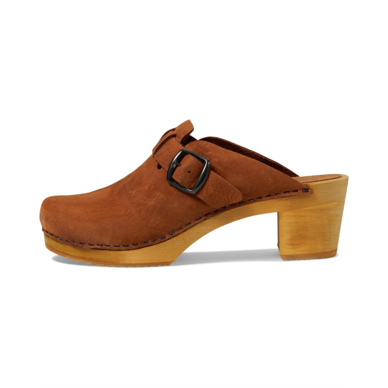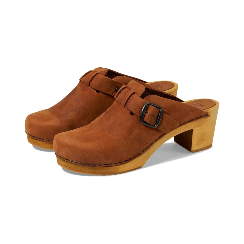 The Sanita Malulo is an open-back clog with a high block heel and adjustable buckle strap on the vamp. Featuring a latex rubber outsole, the low-top footwear has an oiled leather upper construction and wood midsole. The wood is harvested from sustainable FSC-certified lindenwood trees.