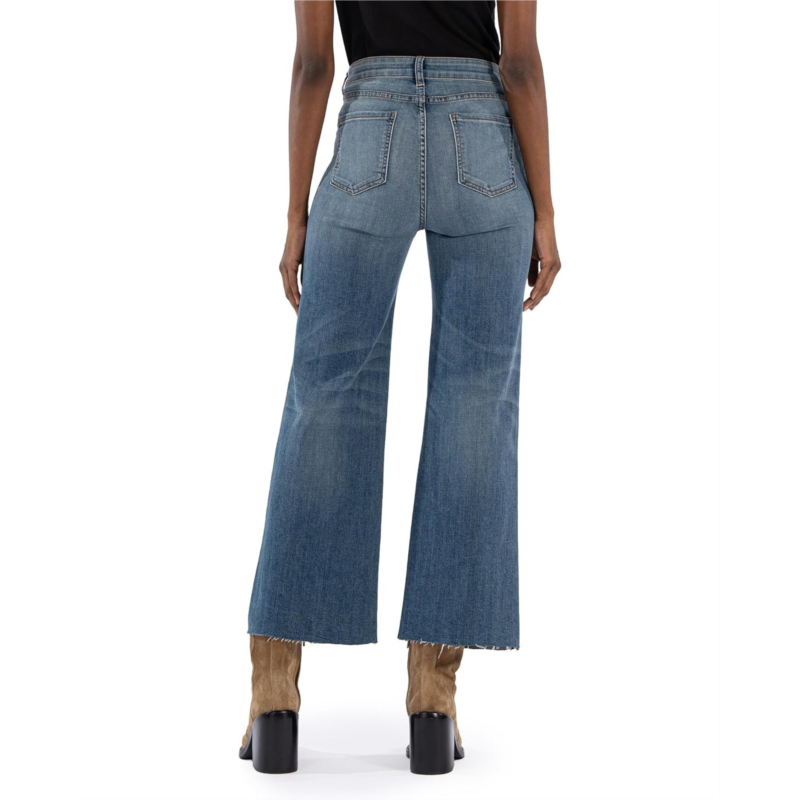 [US] KUT from the Kloth Petite Meg High-Rise Wide Leg Exposed Button Raw Hem Patch Pockets in Prevent