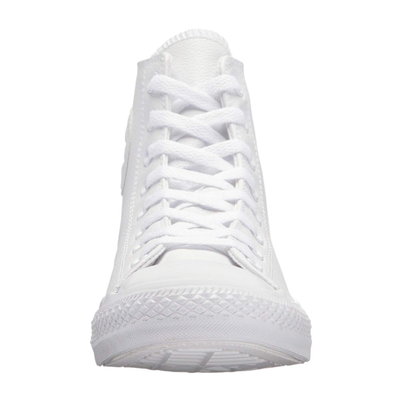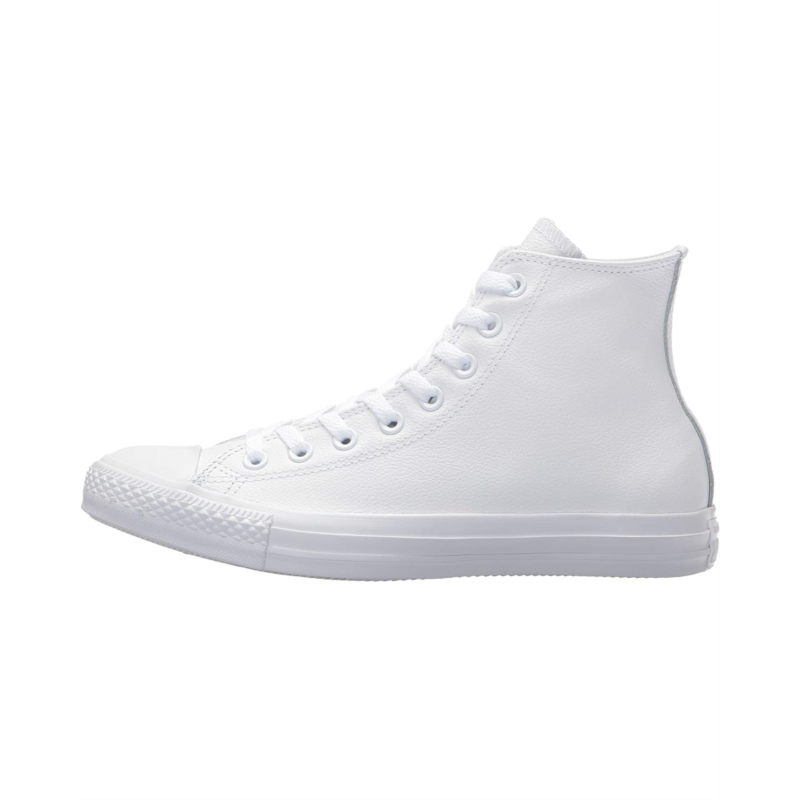 - Chuck Taylor All Star Leather High Top Sneaker hits like the toe cap, textured toe bumper, metal rivets on medial side and Converse All Star rubber heel patch.