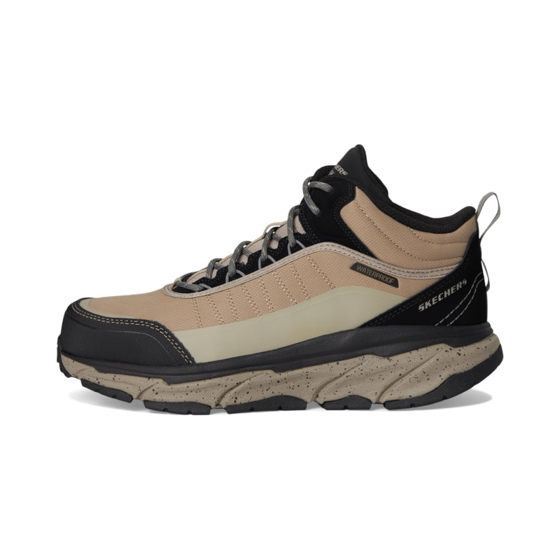 - Stay protected and comfortable on the job choosing the SKECHERS Work DLux Journey SR - Terrain - Guard Comp Toe boots. The lace-up leather design includes woven fabric and synthetic upper for a sleek look and durable performance. Enjoy the all-day comfort of the Skechers Air-Cooled Memory Foam cushioned insole and well-cushioned midsole. These boots are non-metallic and metal detector-friendly, making them perfect for security and construction jobs. Plus, the waterproof construction keeps your feet dry in any weather.