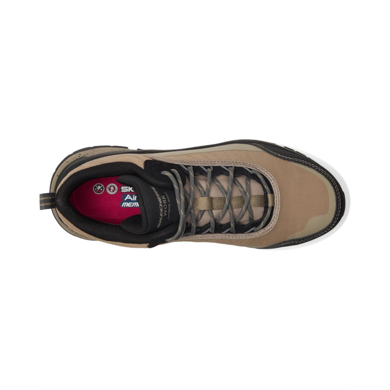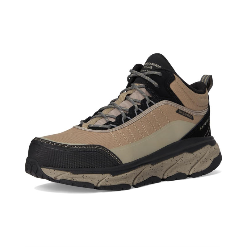 - Stay protected and comfortable on the job choosing the SKECHERS Work DLux Journey SR - Terrain - Guard Comp Toe boots. The lace-up leather design includes woven fabric and synthetic upper for a sleek look and durable performance. Enjoy the all-day comfort of the Skechers Air-Cooled Memory Foam cushioned insole and well-cushioned midsole. These boots are non-metallic and metal detector-friendly, making them perfect for security and construction jobs. Plus, the waterproof construction keeps your feet dry in any weather.