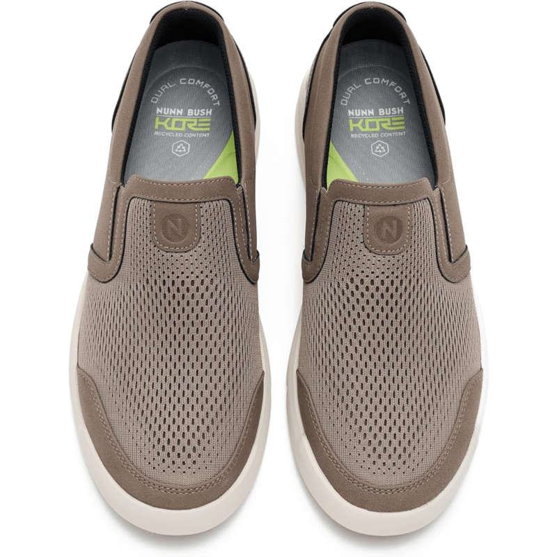 - Slip into comfort and style with the Nunn Bush Kore City Rally Slip-On shoes. The Dual Comfort footbed and unlined design deliver support without sacrificing airflow, while the versatile styling makes it perfect for travel days or weekend wear. Their Dual Comfort technology is a unique combination of two different EVA foam compounds and arch support in the footbed that contains recycled content for a more sustainable future. These slip-on sneakers are made of a faux leather upper, ethylene vinyl acetate insole, and 20% recycled ethylene vinyl acetate midsole. Pamper your feet with this amazing new updated version, constructed with premium materials to provide the highest level of fit integrity. Take your casual shoe game to the next level with these sneakers.