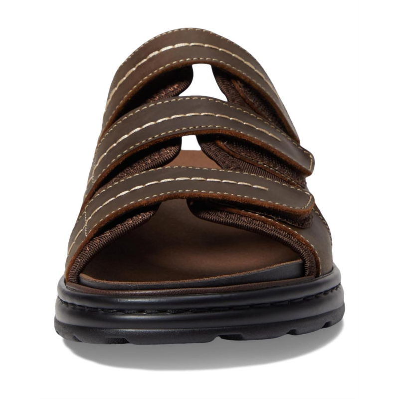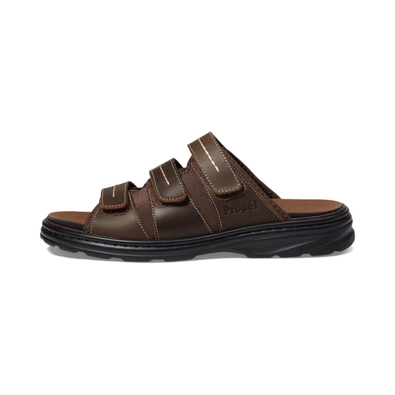 - Slip into comfort and style wearing the Propet Hatcher sandals. The removable PU foam-padded footbed and microfiber sock lining offer added comfort. These flat sandals come with a leather upper with three adjustable hook-and-loop straps that offer a secure fit. These slide sandals are comfortable to wear all day. Match your different outfits and styles wearing these leather sandals.