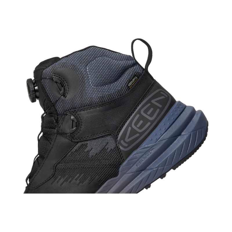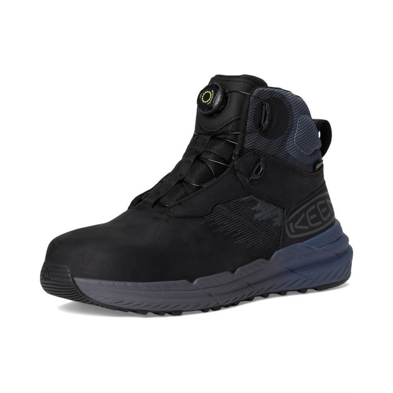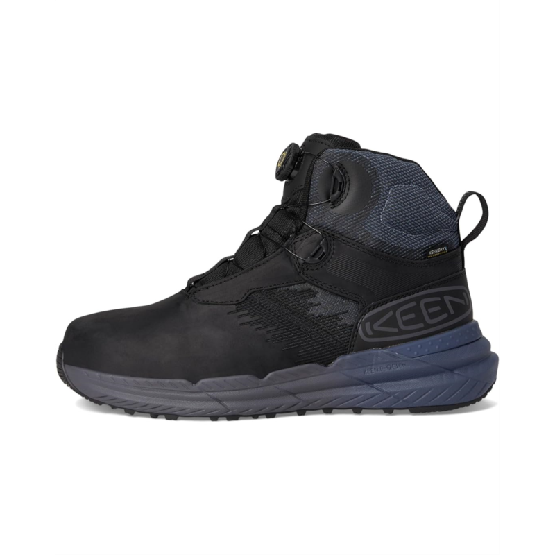 - The KEEN Utility Snapline RF Waterproof Boot (Carbon-Fiber Toe) is an evolution in how waterproof work footwear can fit, feel, and perform. KEEN.RATCHETFIT mechanical lacing allows for a precision fit and on-the-fly adjustment. KEEN.ReGEN+ midsole foam returns up to 60% energy with every step, propelling your workflow like no other. The redesigned carbon-fiber toe provides a sleeker profile, while KEEN.LOCKFIT technology in the heel provides lateral stability. These round-toe waterproof work sneakers for men are built off KEENs Original Fit giving extra room for toes to spread out and extra support. These dependable work boots are great for medium-duty work in roofing, construction, utilities, landscaping, maintenance, and energy. These mid-top boots come with a fabric lining, a removable polyester insole, and an athletic mesh and leather upper that features a KEEN.DRY membrane for protection from the wet.