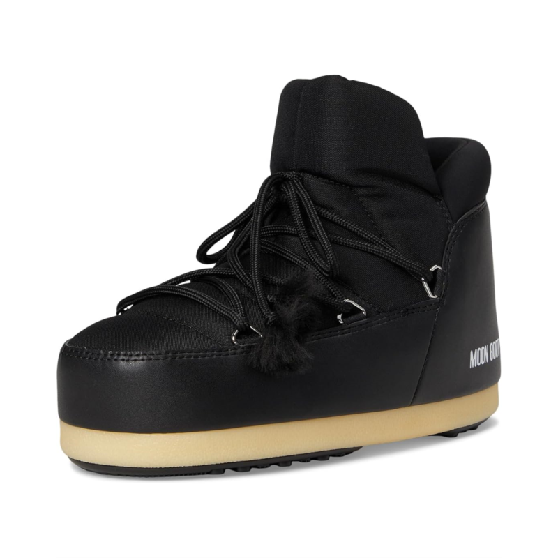 - MOON BOOT Evx Pumps Nylon: This contemporary take on the original Moon Boot ensures youll have one foot in our world and one in another orbit. Crafted to a narrow, flexible silhouette, the low-top pump version of the inimitable Icon riffs on high-technology astronaut gear. Its insulated, fitted with a lightweight thermoplastic midsole, and features suction pads on the rubber tread outsole that offer serious ground control. Crafted with durable polyester upper and lining, these water-repellent boots deliver an innovative fusion of practicality and avant-garde style.