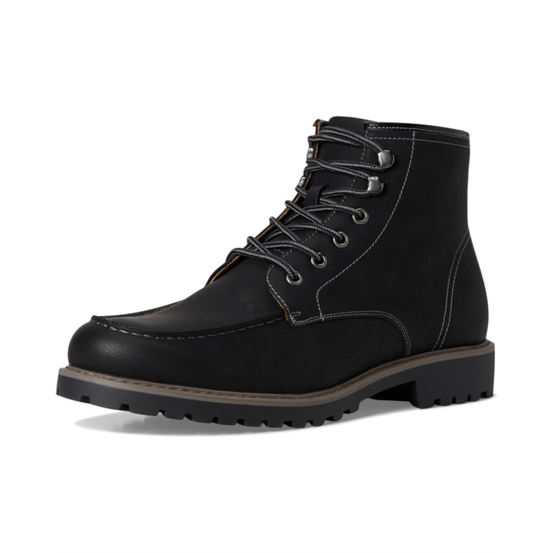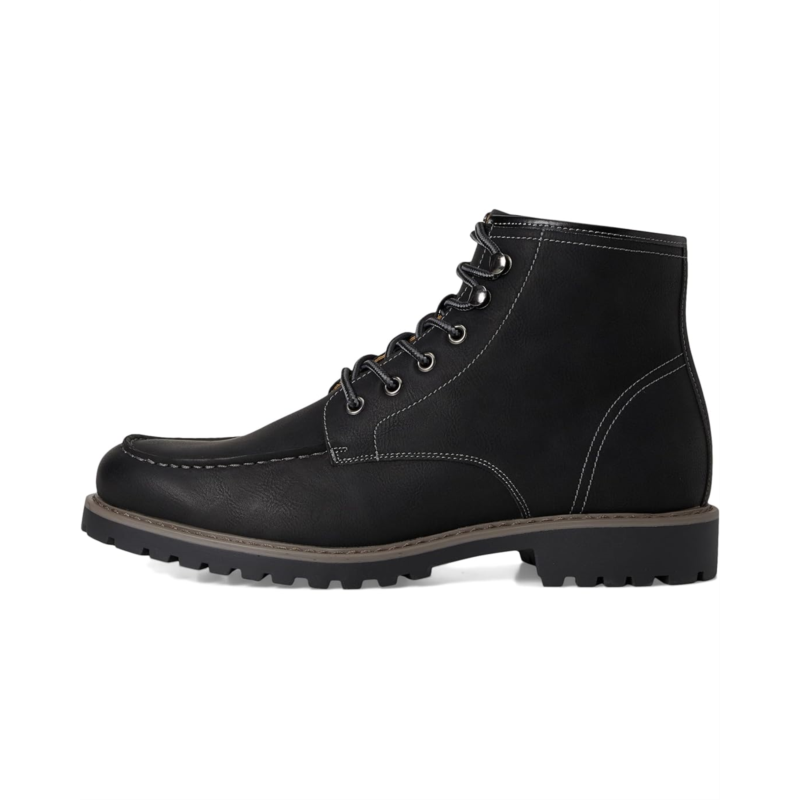 - Utility-inspired, everyday ready. The Vance Zeus moc toe boot brings classic workboot styling into everyday life. With a round toe, sturdy lace-up design, and contrast stitching, its built to look rugged without feeling stiff. The man-made upper is easy to maintain, while the 6 mm Comfort Foam footbed keeps every step cushioned. A durable rubber outsole gives you grip you can count on, and the block heel adds stability without bulk. Whether youre on your feet or off the clock, this boot is all about easygoing confidence.