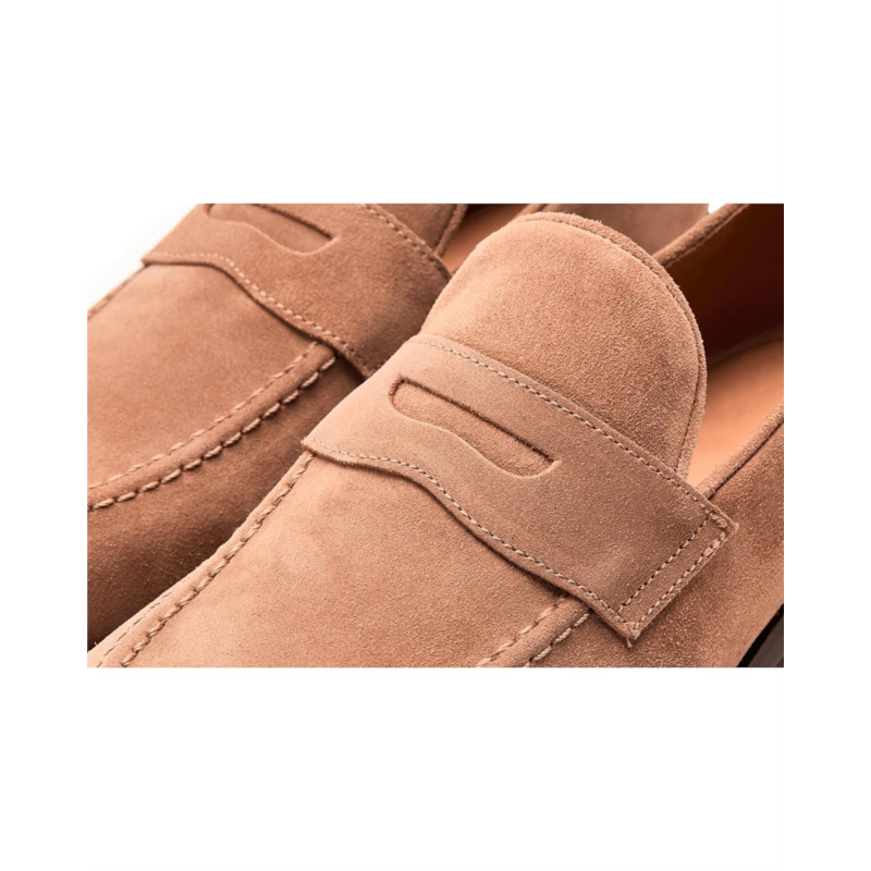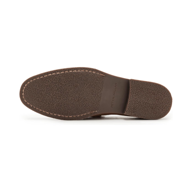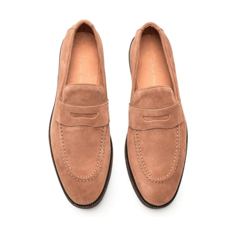 - The Peter Millar Madison Suede Penny Loafers bring modern versatility to a time-honored silhouette. They are shaped by a suede leather upper with a soft almond toe shape. As no two pieces of natural leather are the same, each pair will have its own subtly unique expression. These slip-on loafers feature Bologna construction for exceptional flexibility and comfort, with a leather welt and a rubber outsole for traction and durability. Their leather insole and lining add to their comfort and durability. These leather loafers are perfect to pair with your formal looks and outfits.