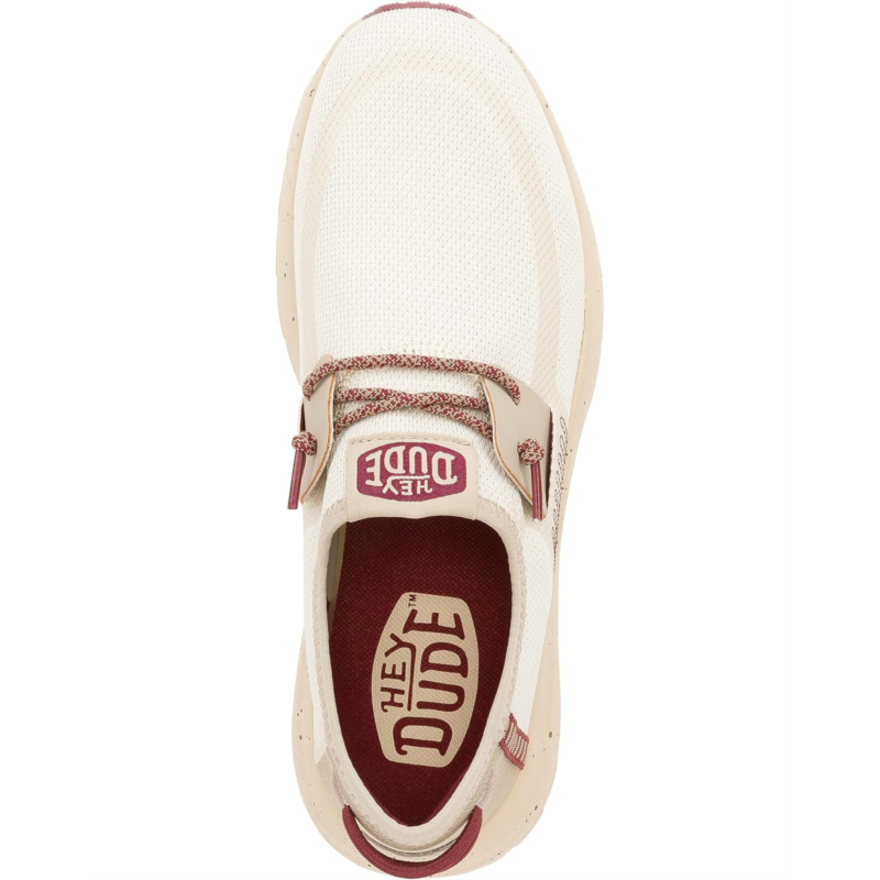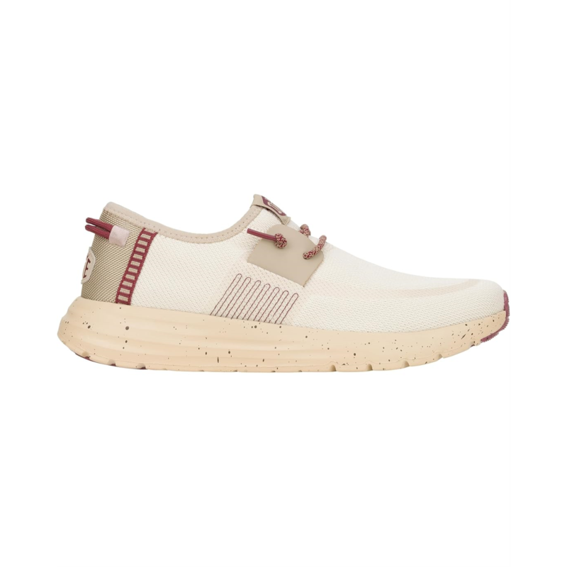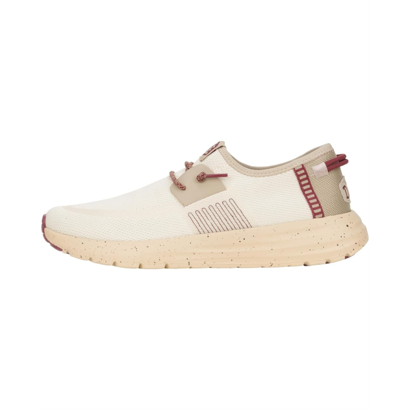 Marvel in fashion-forward excellence wearing the Hey Dude Sirocco M Hype Taupe/Mahogany Loafers. The round toe footwear features canvas upper construction with heel pull tabs and fixed elastic laces offering an easy slip-on style.