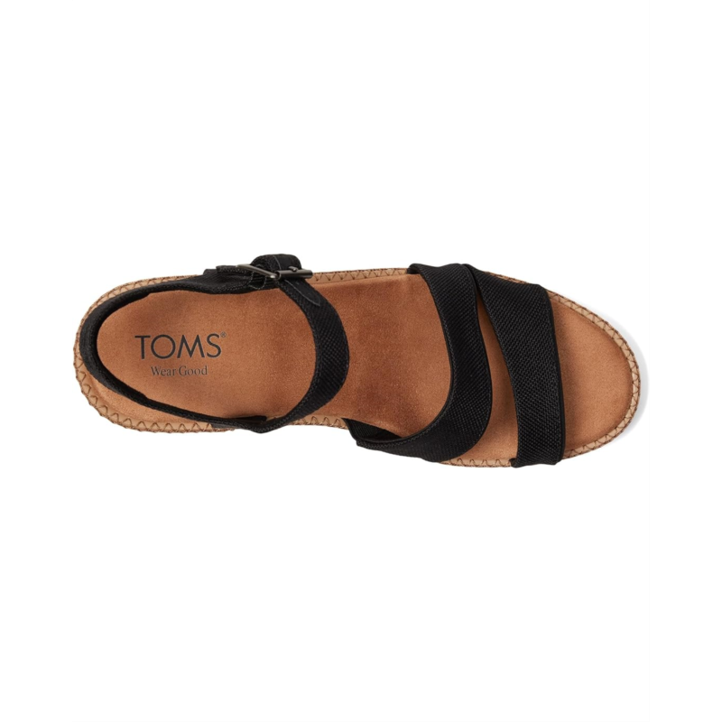 Complement your chic warm weather style in the TOMS Darya sandals. This platform wedge features a rope-wrapped midsole, round toe silhouette, nylon upper, and polyester lining.
