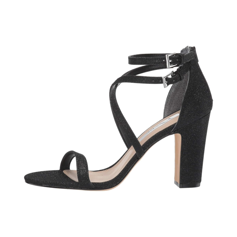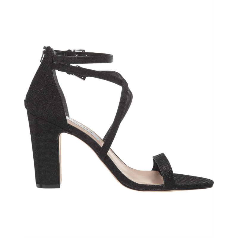 The Nina Shari heels are ready for your night out featuring a glittering textile upper and buckled ankle straps.