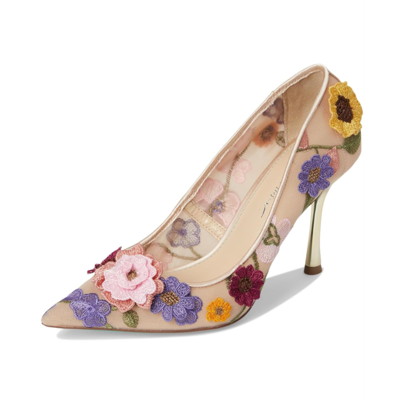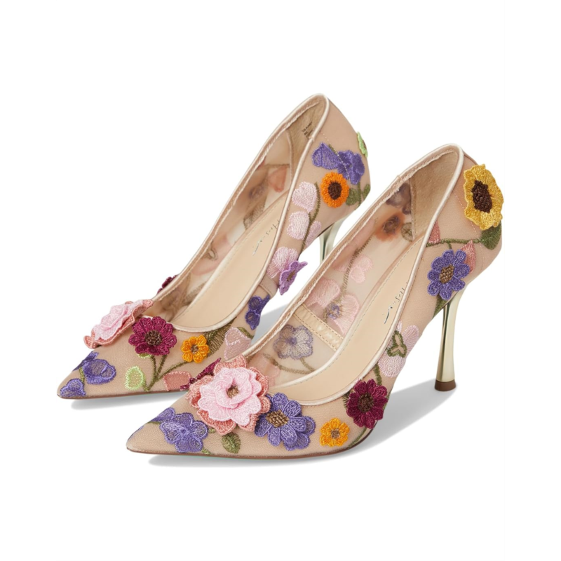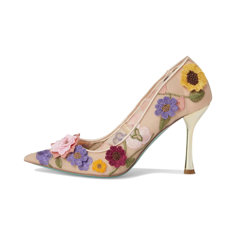 The Blue by Betsey Johnson Aimey pumps are an elegant staple with their allover flower embellishments. These heeled pumps are made of a rubber insole and faux leather lining. The faux leather upper features a slip-on style for easy on and off. Style up your looks and outfits with these pump shoes.