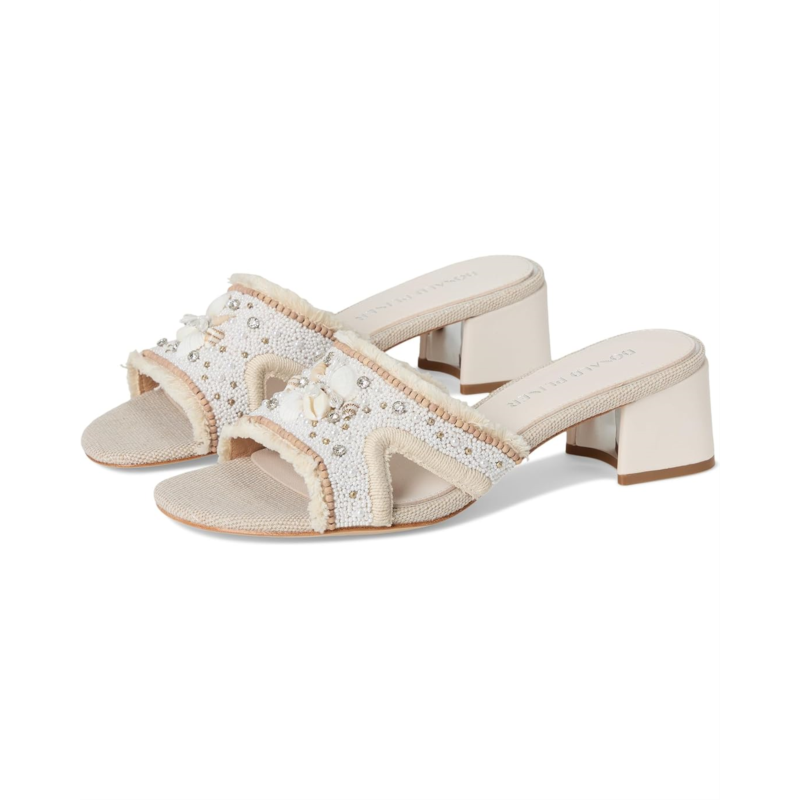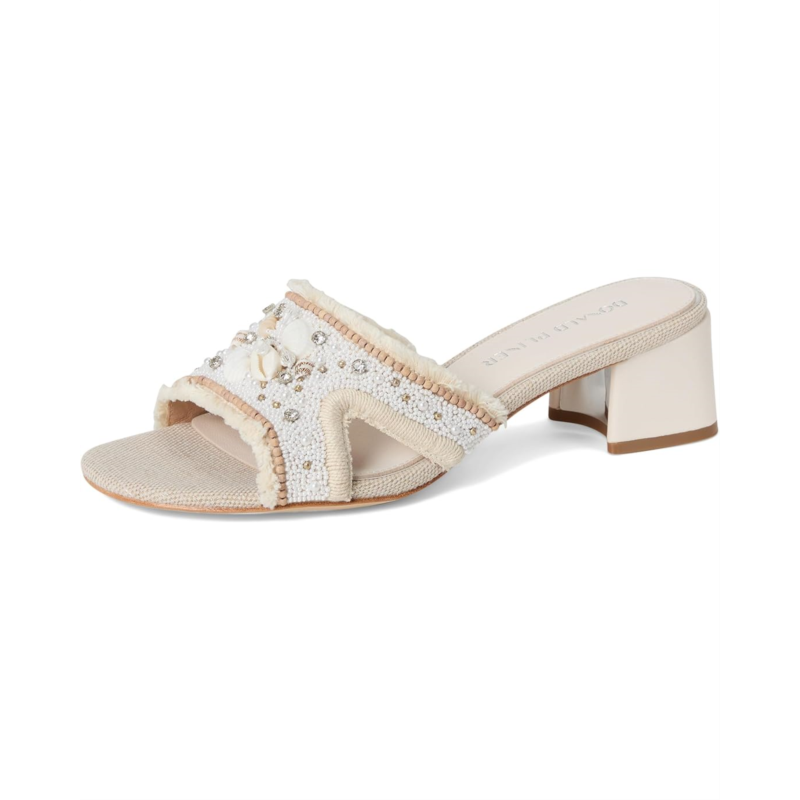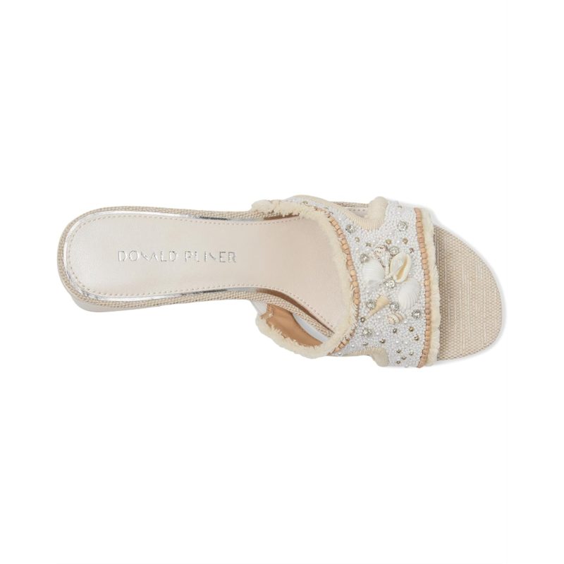 The Donald Pliner Kaylan sandals offer a breezy aesthetic with their intricate beaded detailing. These heeled sandals are made of a rubber upper and leather lining. Their slip-on design and memory foam insole ensures effortless comfort, making them a perfect go-to for warm days.