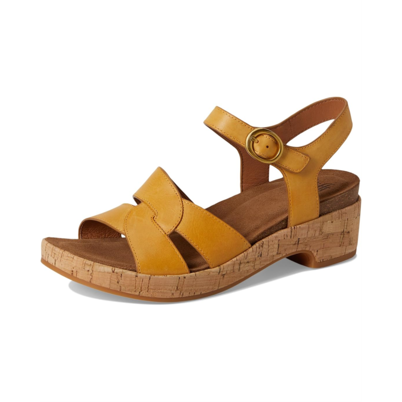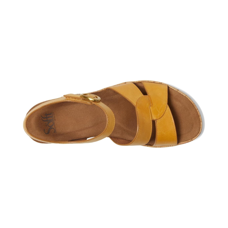 Add a charm to your look wearing the Sofft Capri. Crafted from leather upper, and lining, this pair of sandals features open round toe, twisted leather vamp detailing, suede-lined cork comfort footbed, cork wrapped platform, ankle strap and adjustable buckle closure.