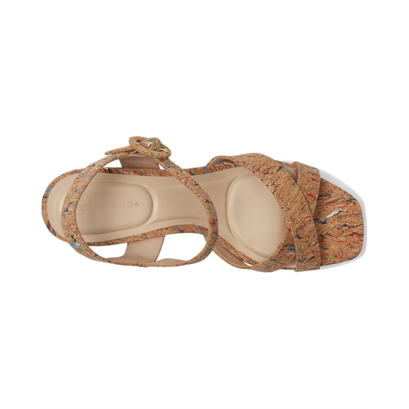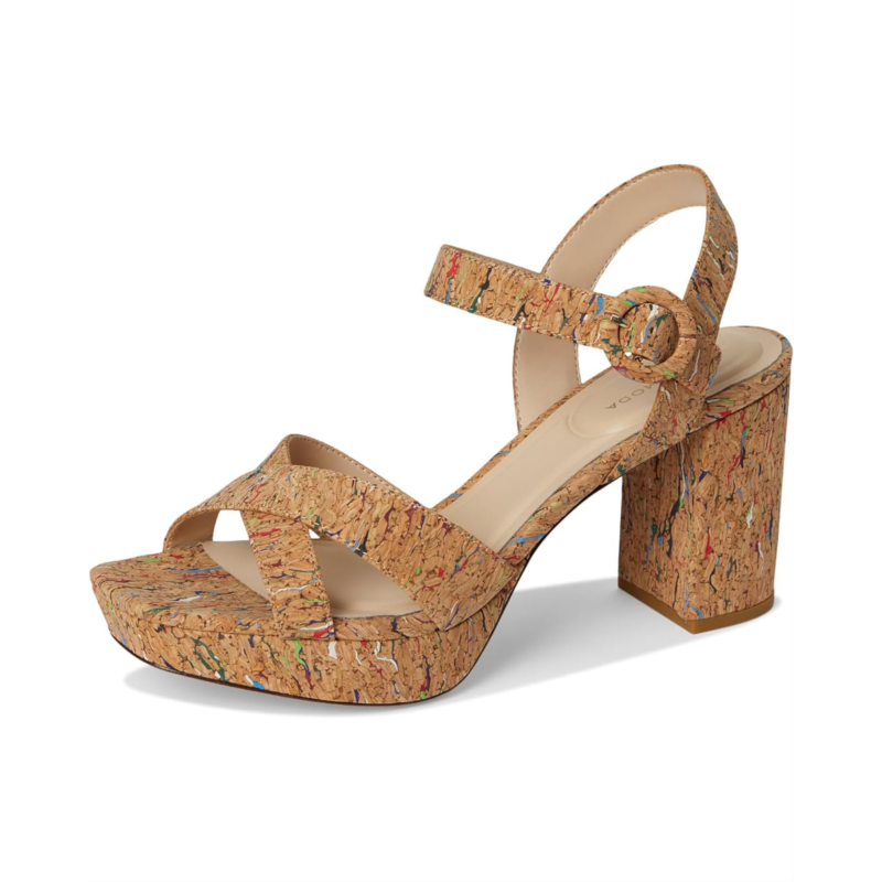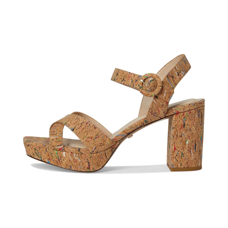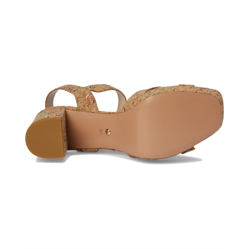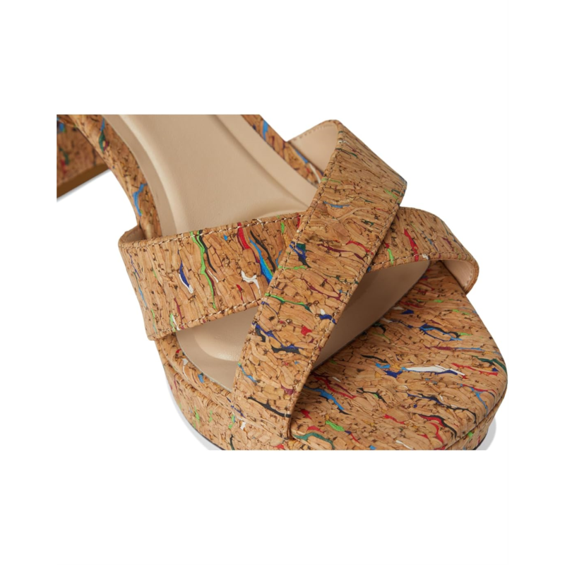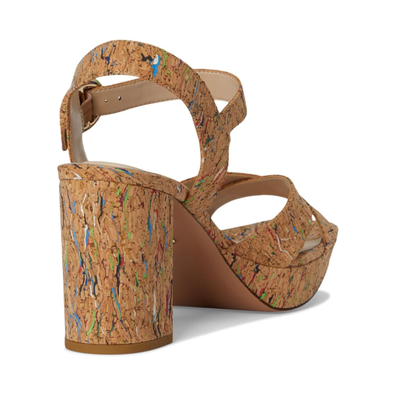 Multi colored cork upper straps and platform and heel for a fun summer look. Adjustable ankle strap for fit. Pair with your favorite denim or skirt for an effortlessly chic look.