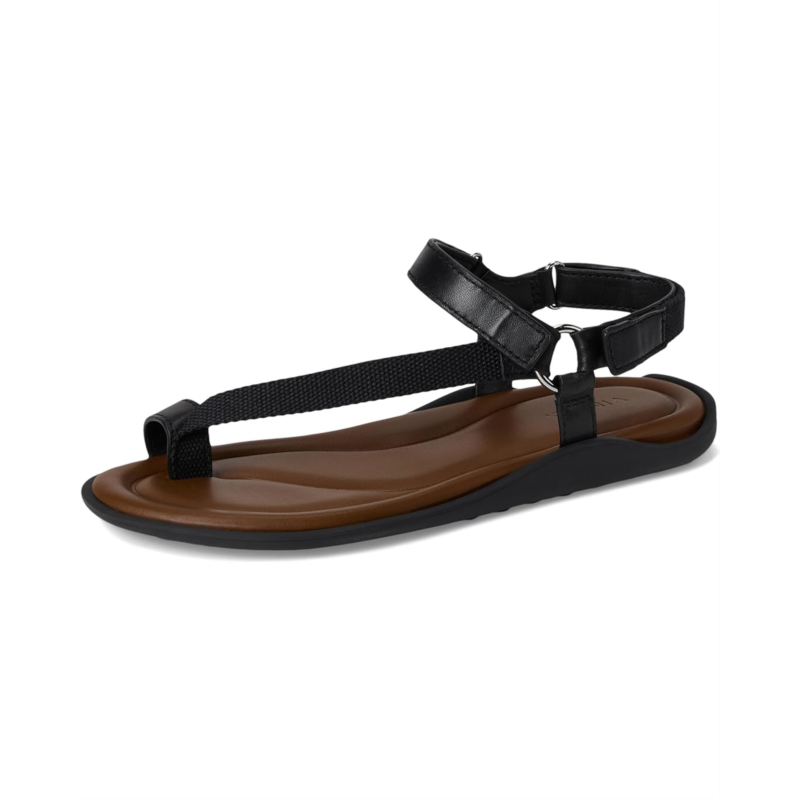 The Vince Summer Strappy Sandals combine stylish aesthetics and impeccable comfort. The open round-toe sandals are crafted with a leather & fabric upper with a chic toe loop, fabric lining responsibly sourced from Leather Working Group certified tanneries material, and a foam insole. The double hook-and-loop closure is designed for a secure fit.