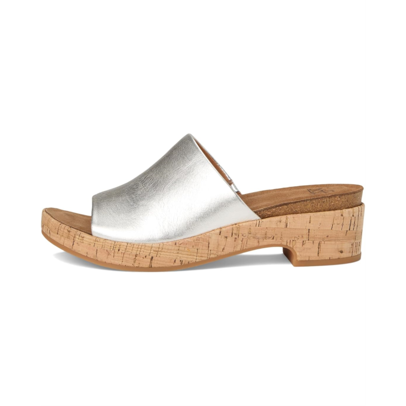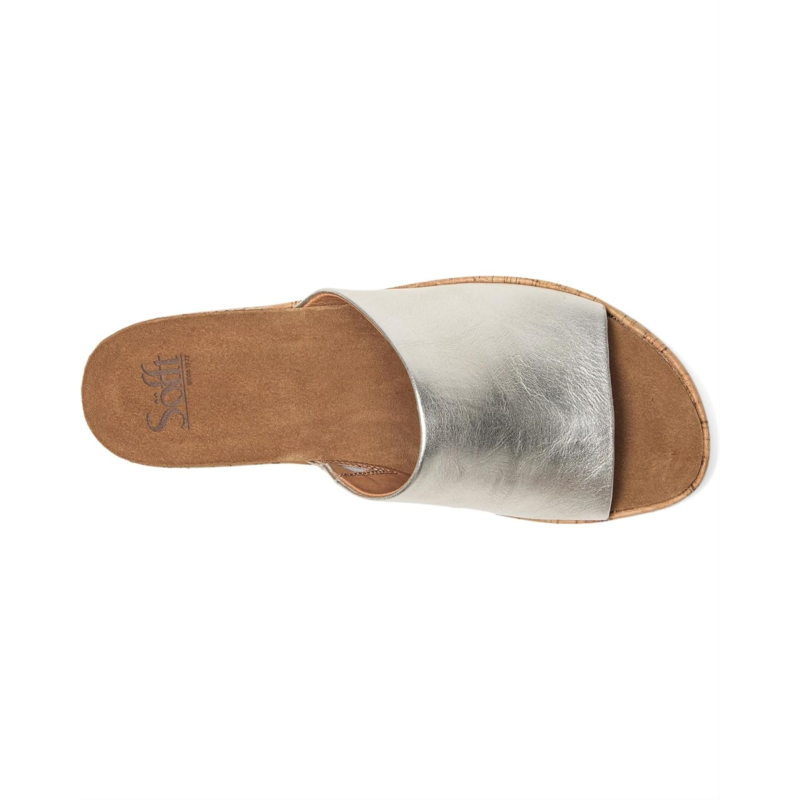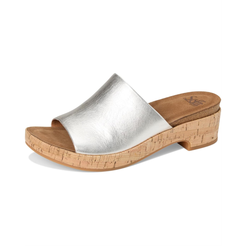 Comfortable and chic, the Sofft Cass Sandals let you enjoy every walk you take. The slip-on style heels are carfted with a soft leather upper, breathable leather lining, and a padded padded cork suede foam footbed. The open round toe shape and cork-wrapped platform heel adds a stunning detail to the look.