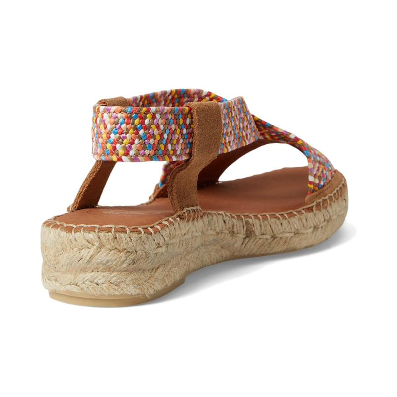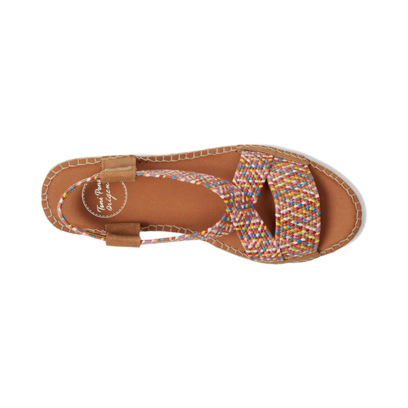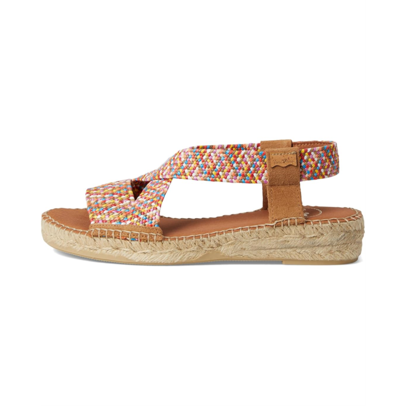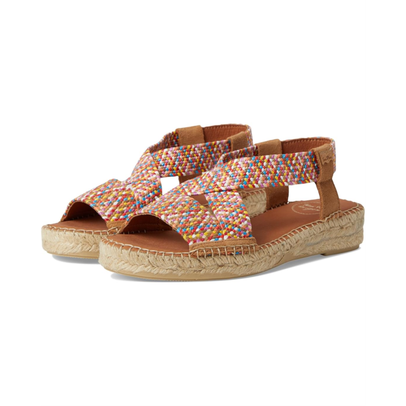 Make a swanky appearance wearing the Toni Pons Eliana. Crafted from rubber upper, leather lining, and leather insole, this pair of sandals features open round toe, wedge heel, braided fabric strappy upper, slingback strap with hook-and-loop closure, and brand detailing on the footbed.