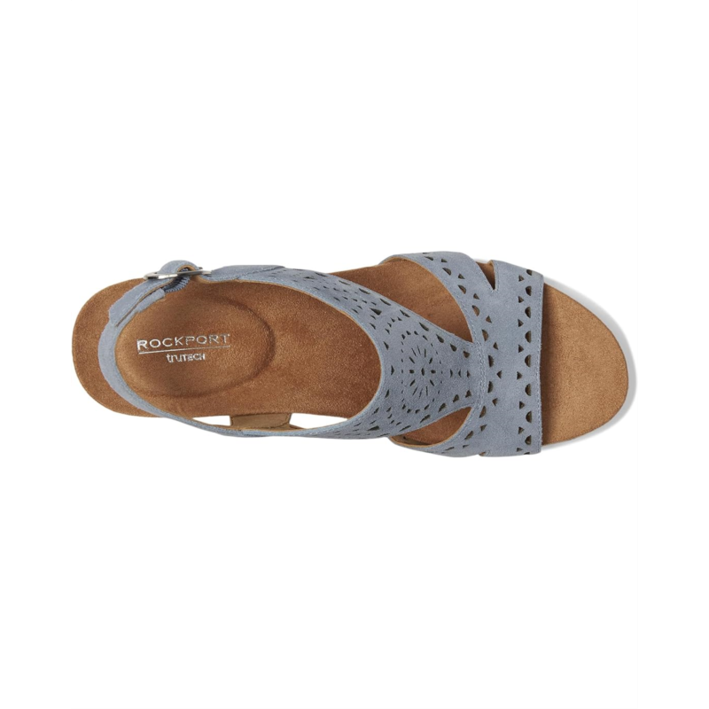 The Rockport Belis is a must-have for your wardrobe, blending fashion and function with ease. Designed with a luxe suede upper, an open-toe silhouette, and an adjustable buckle slingback strap, this high wedge elevates any outfit while ensuring a secure fit. The cushioned insole and built-in arch support provide exceptional comfort, while truTECH technology absorbs shock with every step, keeping you light on your feet from day to night. A flexible synthetic rubber outsole enhances movement, making this wedge as practical as it is chic.