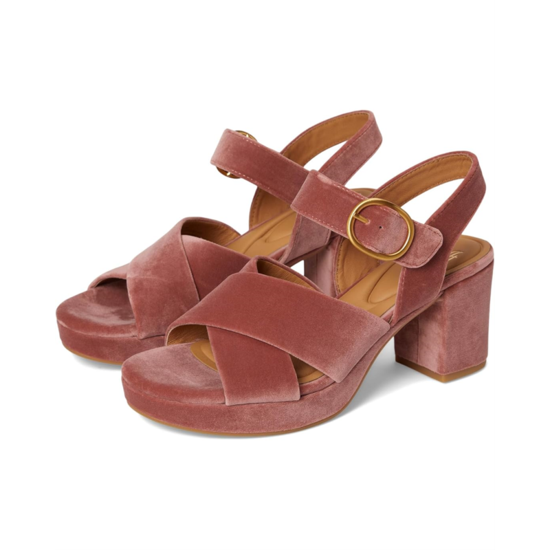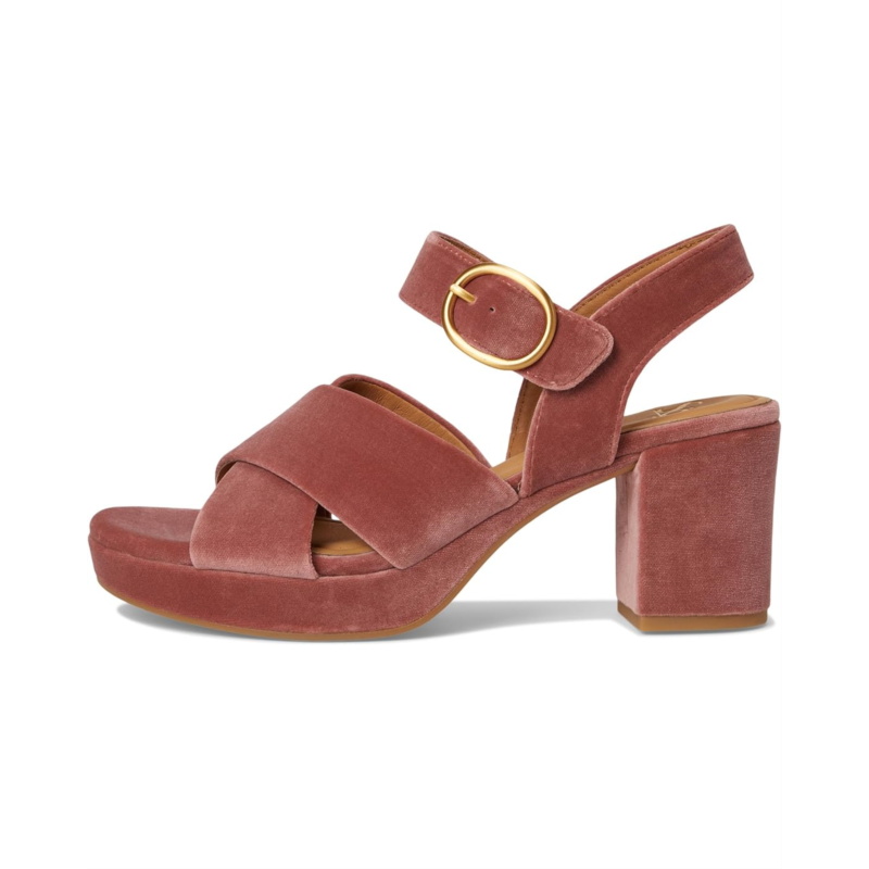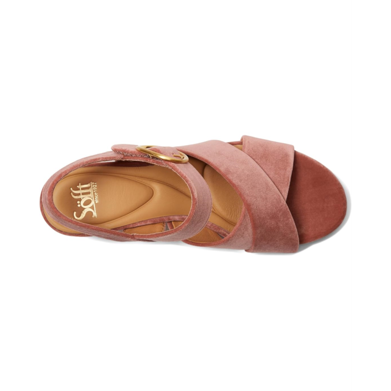 Make the Sofft Lizzie block heel sandal a versatile addition to your shoedrobe. Featuring a cross band vamp and a hook-and-loop adjustable ankle strap for a secure fit. The platform construction adds both height and comfort, while the decorative buckle accent provides a stylish touch.