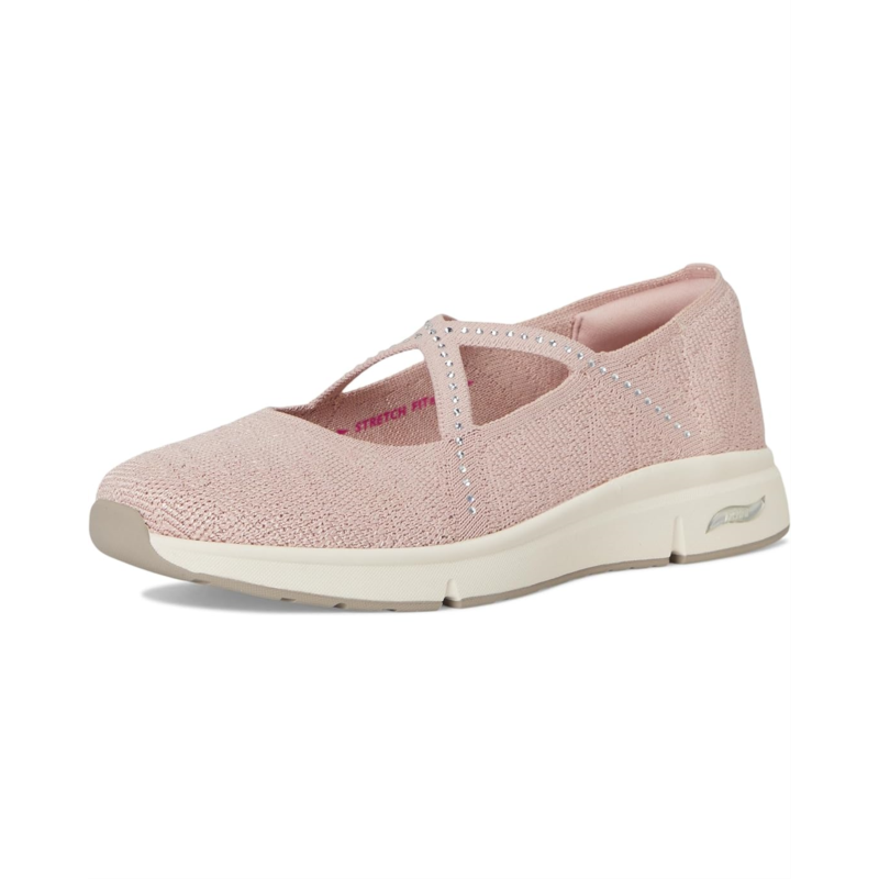 Celebrated lifestyle expert, Martha Stewart, delivers her one-of-a-kind touch to these SKECHERS Martha Stewart Arch Fit Living - Meadow Walk shoes. A part of the Skechers x Martha Stewart collaboration, these Mary Jane shoes feature a recycled knit mesh upper with rhinestone embellishments and a removable Arch Fit insole with podiatrist-certified arch support. Their footbed helps mold to your foot to reduce shock and increase weight dispersion, while the Stretch Fit design provides socklike comfort. They are crafted with 100% vegan materials. Lounge about in laid-back comfort with these slip-on shoes.