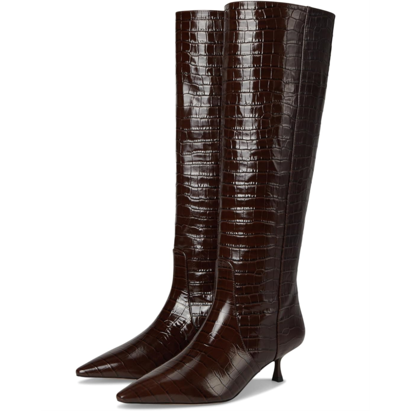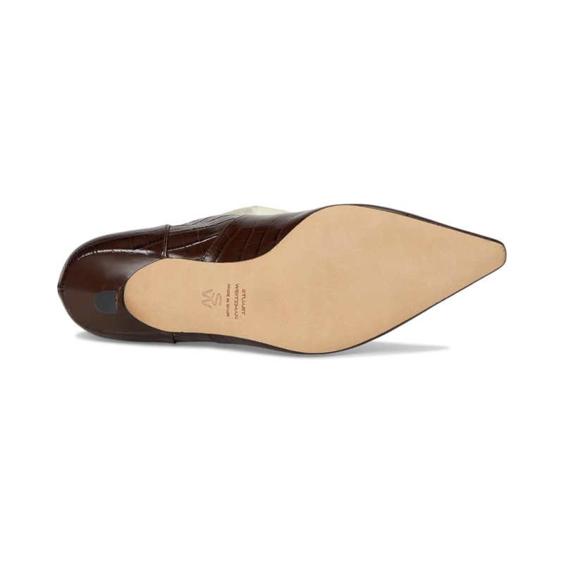 Hit the streets with whimsy flair wearing Stuart Weitzman Naomi 50 Boot. The mid-top footwear features leather upper and lining construction with pointed toe silhouette complementing the sleek stiletto heel.