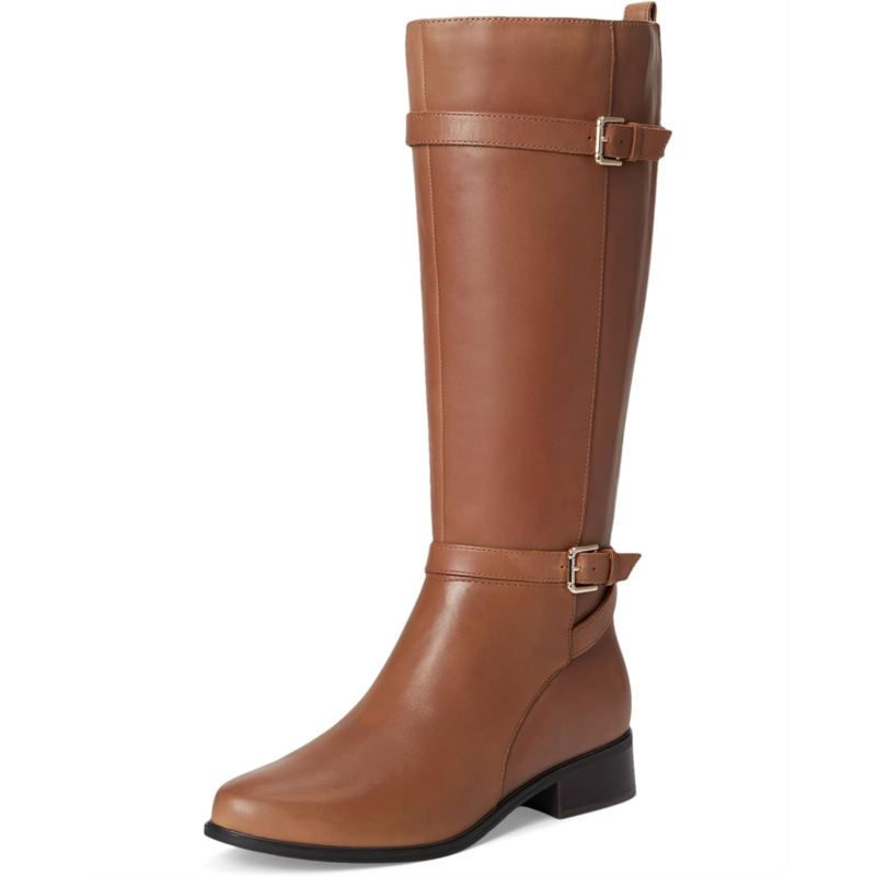 Look chic and comfortable wearing the Rockport Harper boots. Featuring a cushioned insole and two wrap-around buckle straps that give the perfect balance of sleek and unique detail. Featuring truTECH technology for lightweight shock absorption foam that provides extra underfoot cushion and shock absorbency in the heel area. The knee-high boots feature sleek leather upper, fabric lining, cushioned foam insole, and zippered side closure.