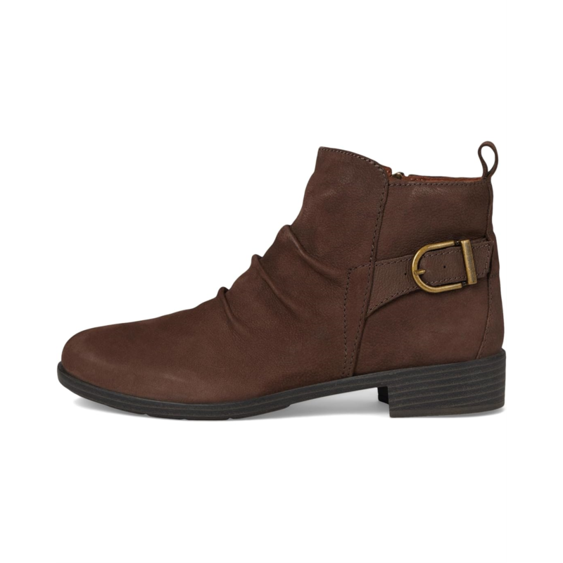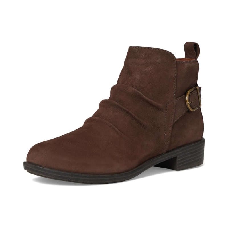 Let your free spirit soar in the Cobb Hill Nessa casual booties. It features ruching on the upper, exceptional arch support and flexibility in the outsole. Plus, it offers a cushioned footbed to take these booties from essential to incredible. It features round toe, buckle detailing, and low heel detailing.